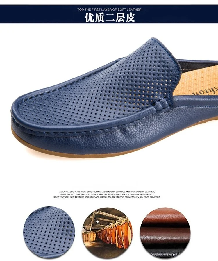 Летняя обувь с вырезами; Мужские полуботинки; Повседневные Роскошные брендовые лоферы; Тапочки; Кожаная дышащая обувь; Слипоны; Мокасины; Skor