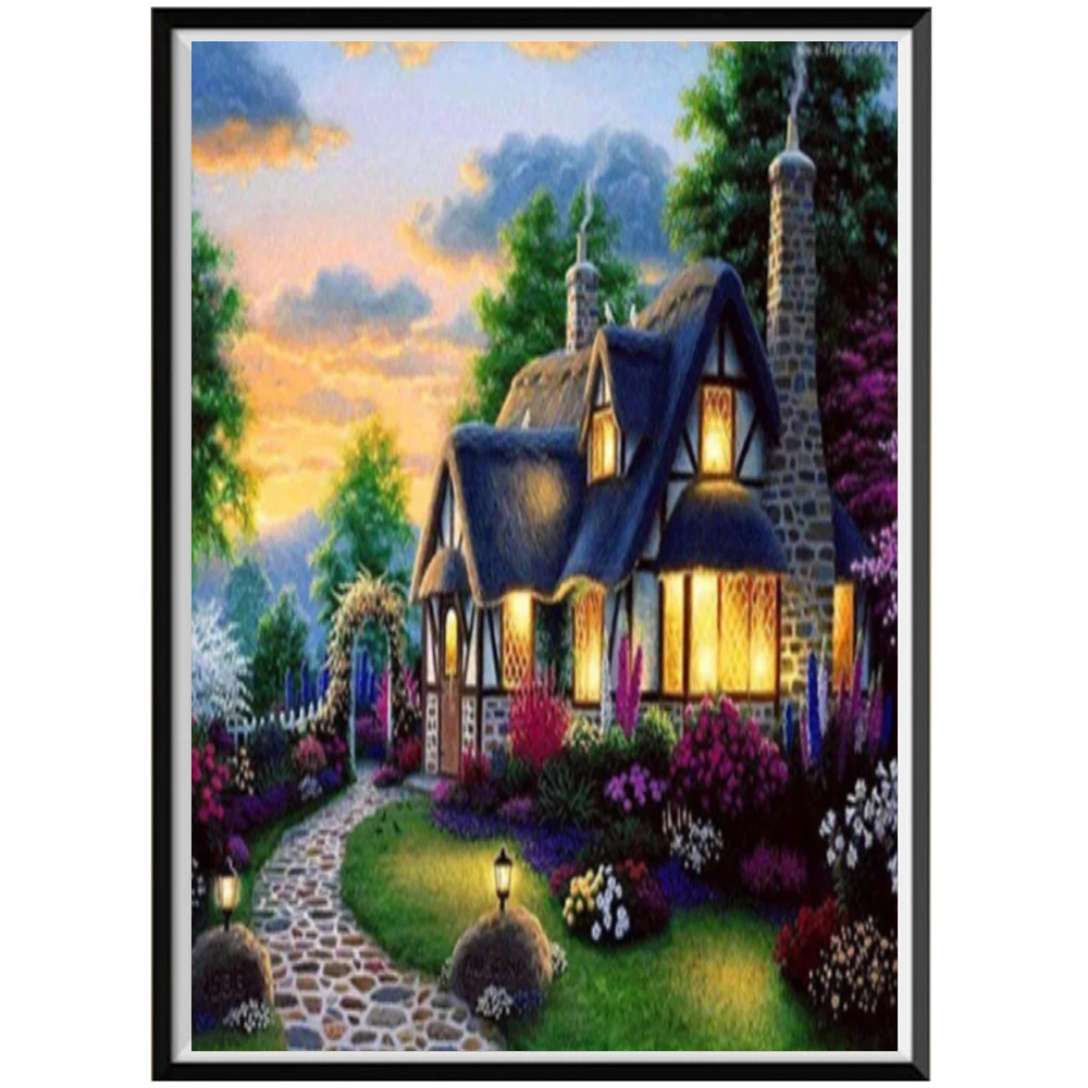 Картины из алмазов 5D сделай сам, полные страз, пейзаж, коттедж, ал...