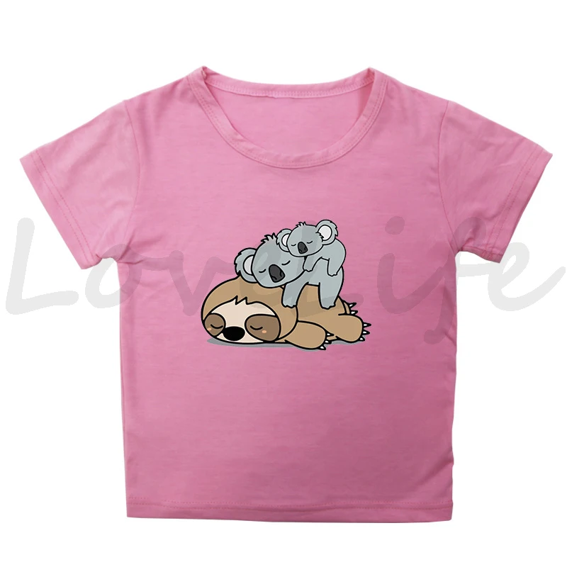 Детская футболка Koala Sloth с принтом для мальчиков и девочек, Мультяшные футболки, забавная футболка, Детские повседневные летние хлопковые футболки с коротким рукавом