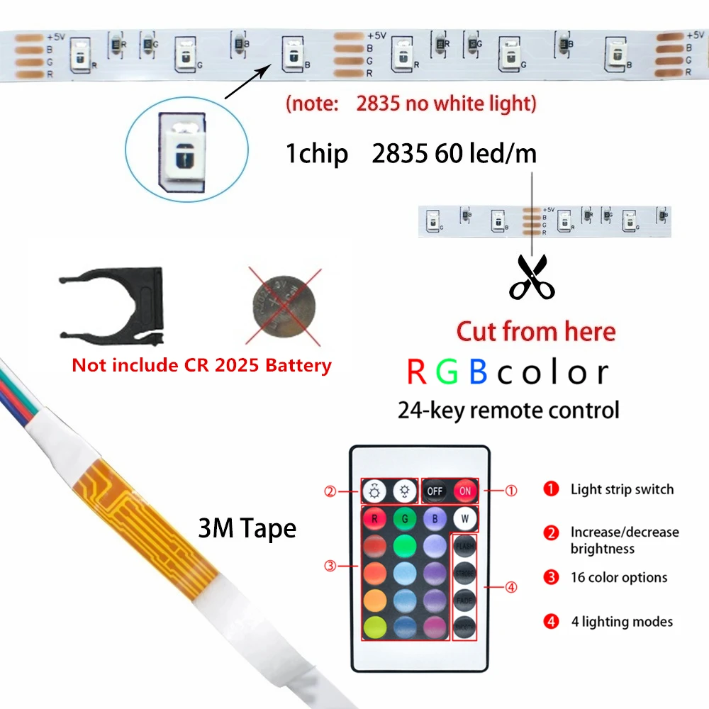 Светодиодный 5 м полоса светильник USB Инфракрасный пульт дистанцио...