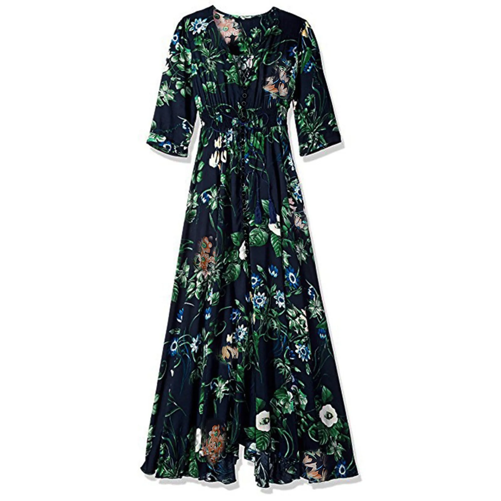 Летнее платье с 3D цветочным принтом, женское длинное платье на пуговицах с разрезом, летняя одежда для женщин, женские сарафаны, элегантный Халат