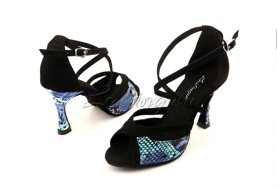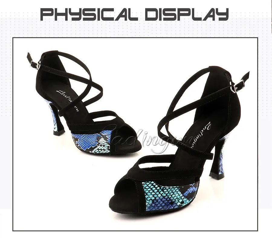 LadingwuЖенская обувь для латинских танцев; Черные замшевые и Синие...