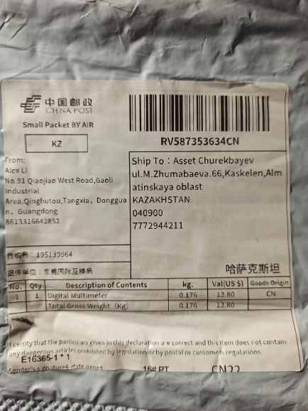 Доставка быстро,клёвый мультиметр,удобный и эргономичный. Показаниями не сильно уступает дорогих мултиметрами, погрешность минимальная и допустимая.Единственный пока минус за угол обзора экрана,но не критично. Рекомендую.