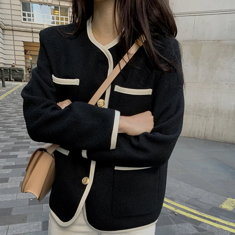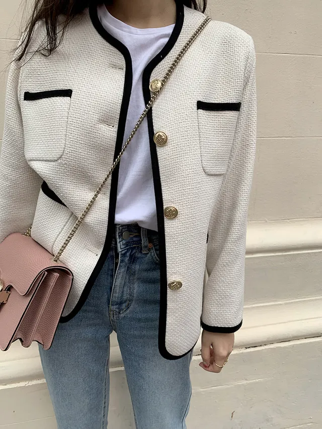 Куртка женская короткая, однобортная, с круглым вырезом и множеством карманов, весна 2021