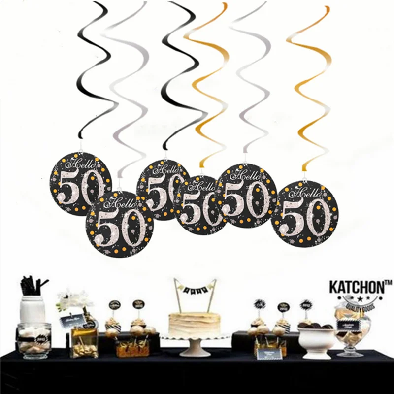 Спиральные подвесные украшения для дня рождения, Декор черного, зол...
