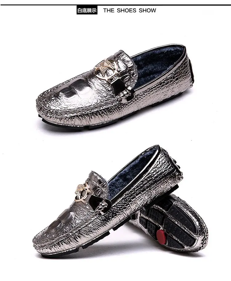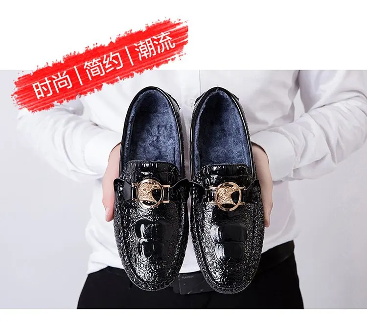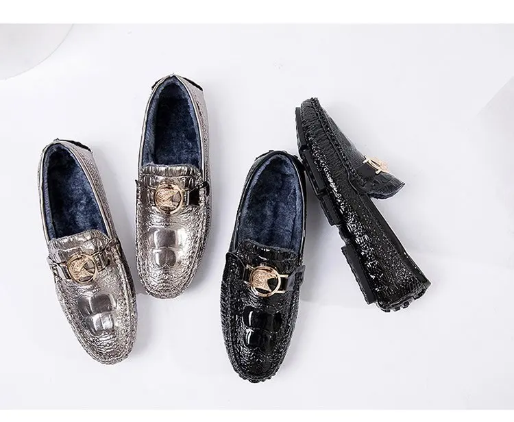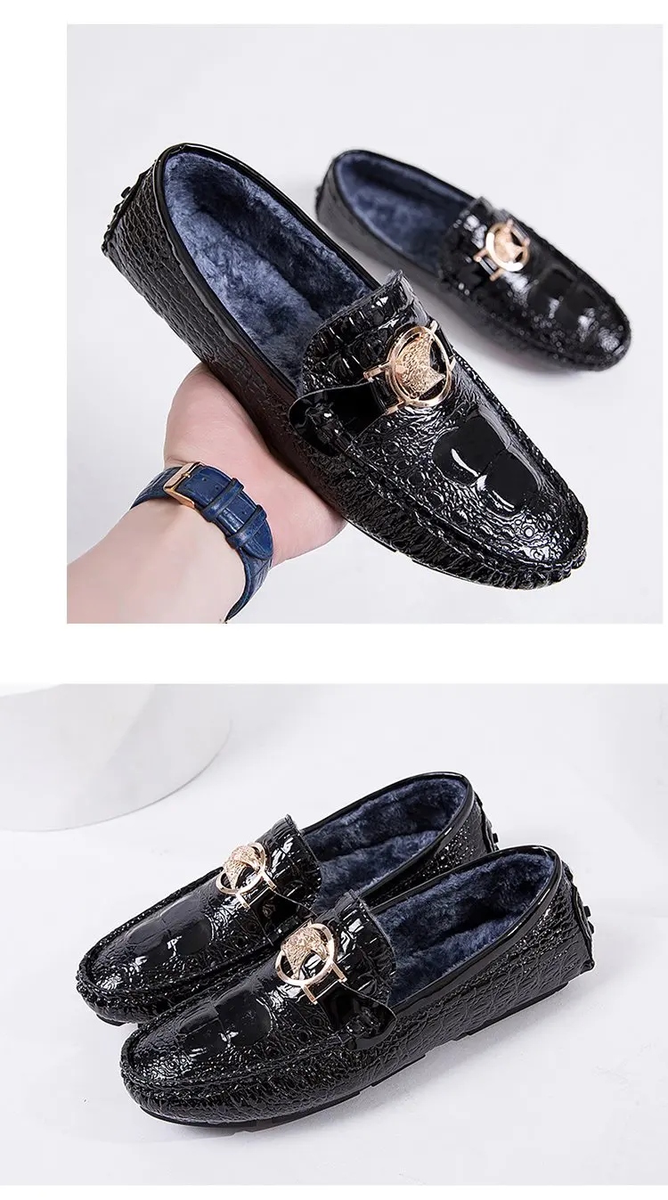 Мужские повседневные кожаные лоферы, черные плюшевые удобные мокасины на плоской подошве, обувь для вождения, зима 2021