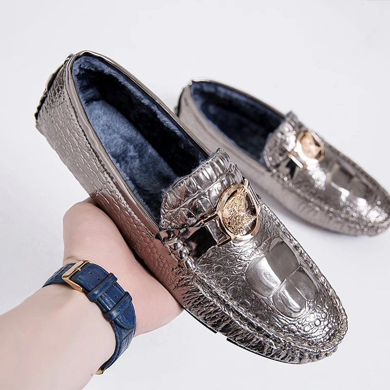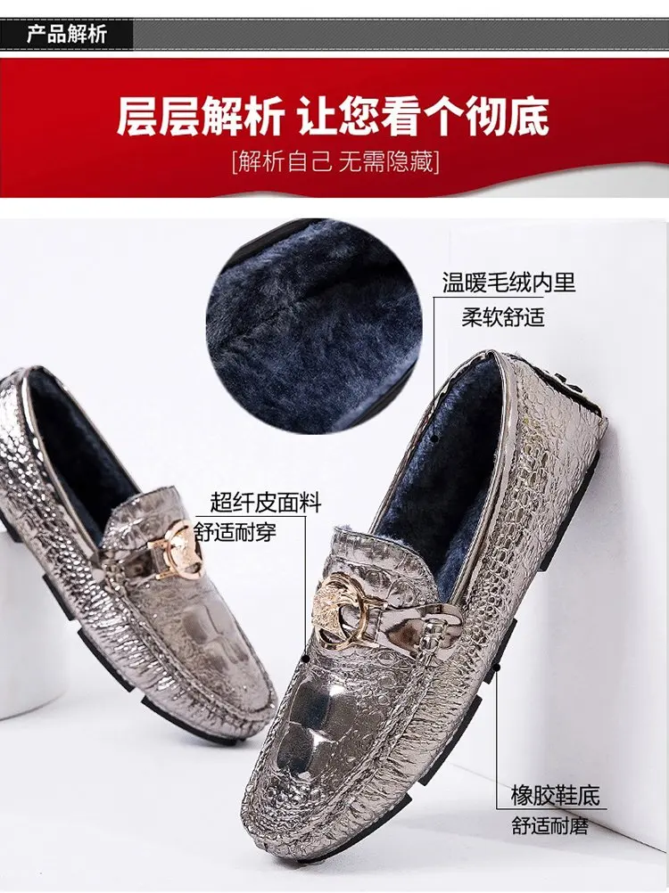 Повседневная кожаная обувь; Мужские лоферы; Новинка 2021 года; Сезон Зима; Плюшевые удобные мужские туфли на плоской подошве; Модная мужская обувь для вождения; Меховые мокасины; Мужская обувь