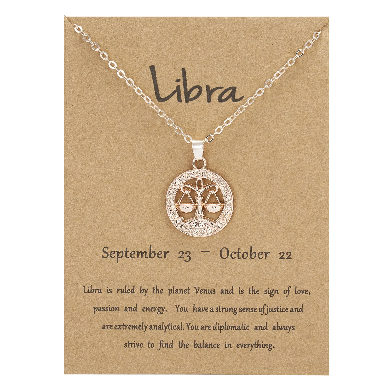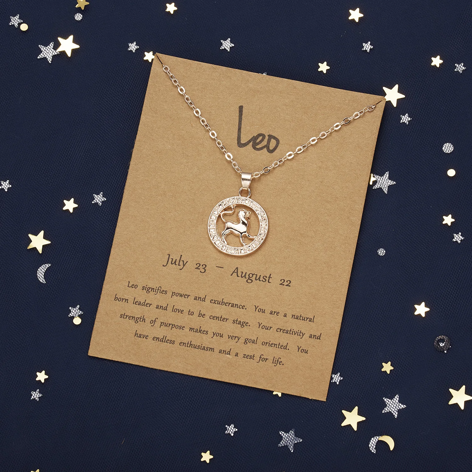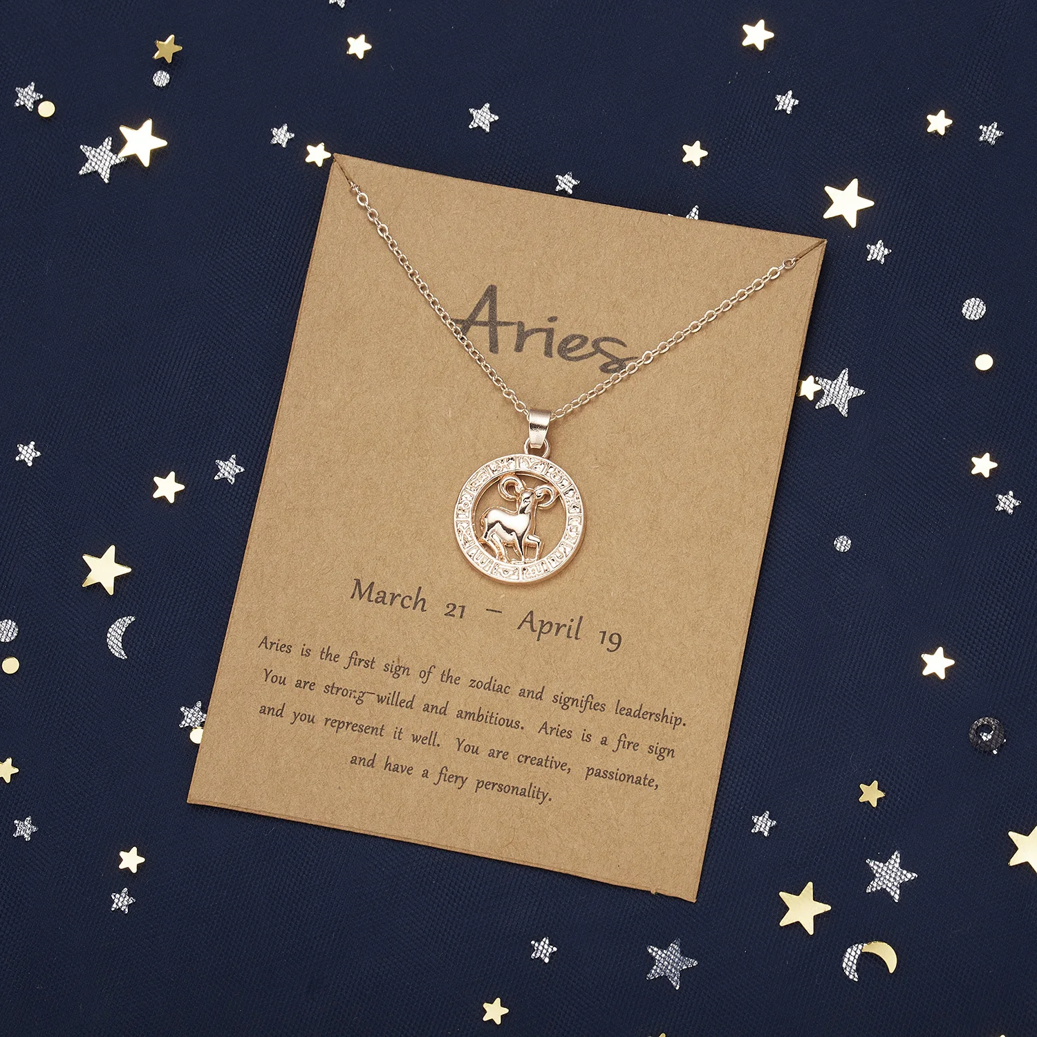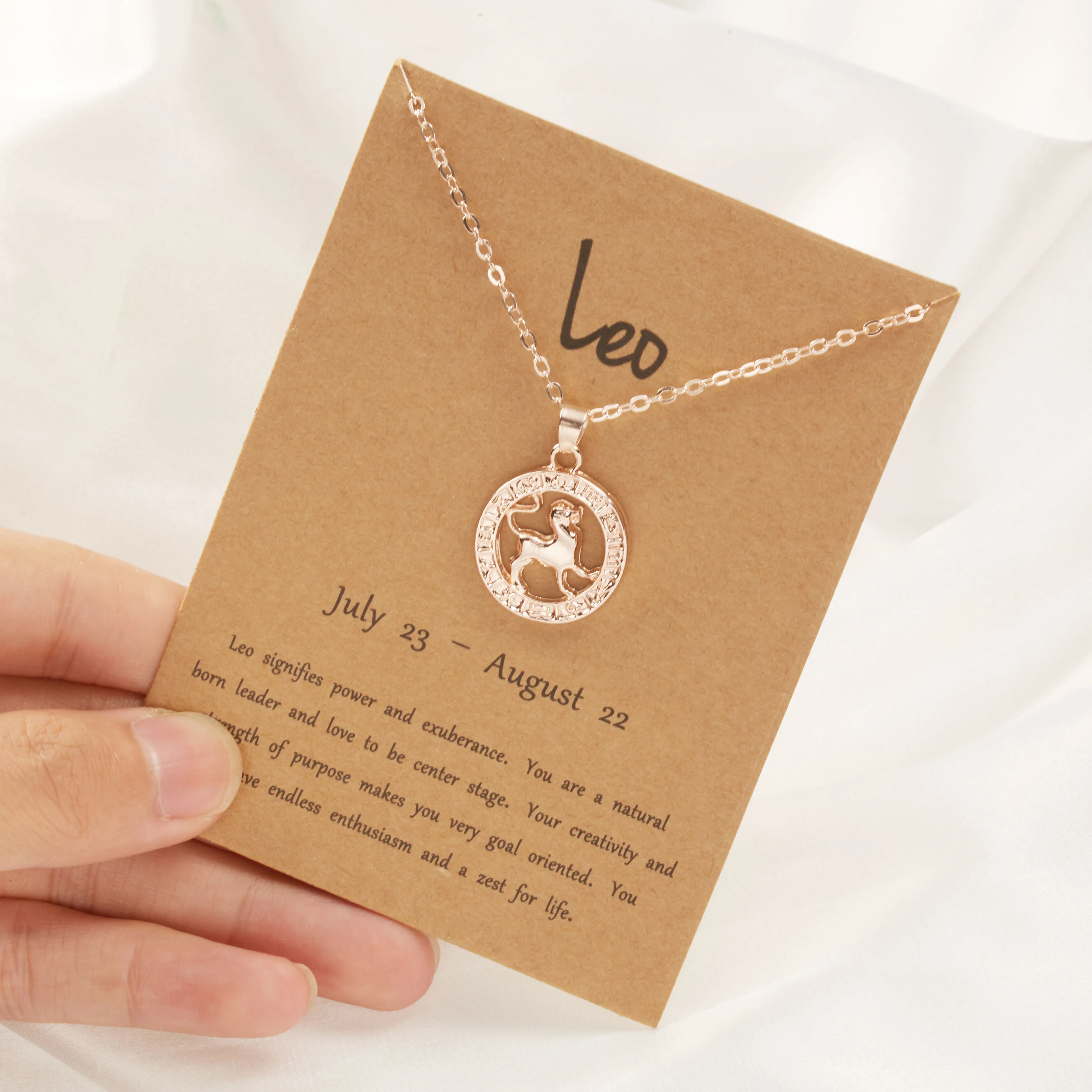 Ожерелье с подвеской Овен и Лев для мужчин и женщин, колье из металлического сплава под розовое золото с изображением 12 созвездий, Знак зодиака, ювелирные изделия
