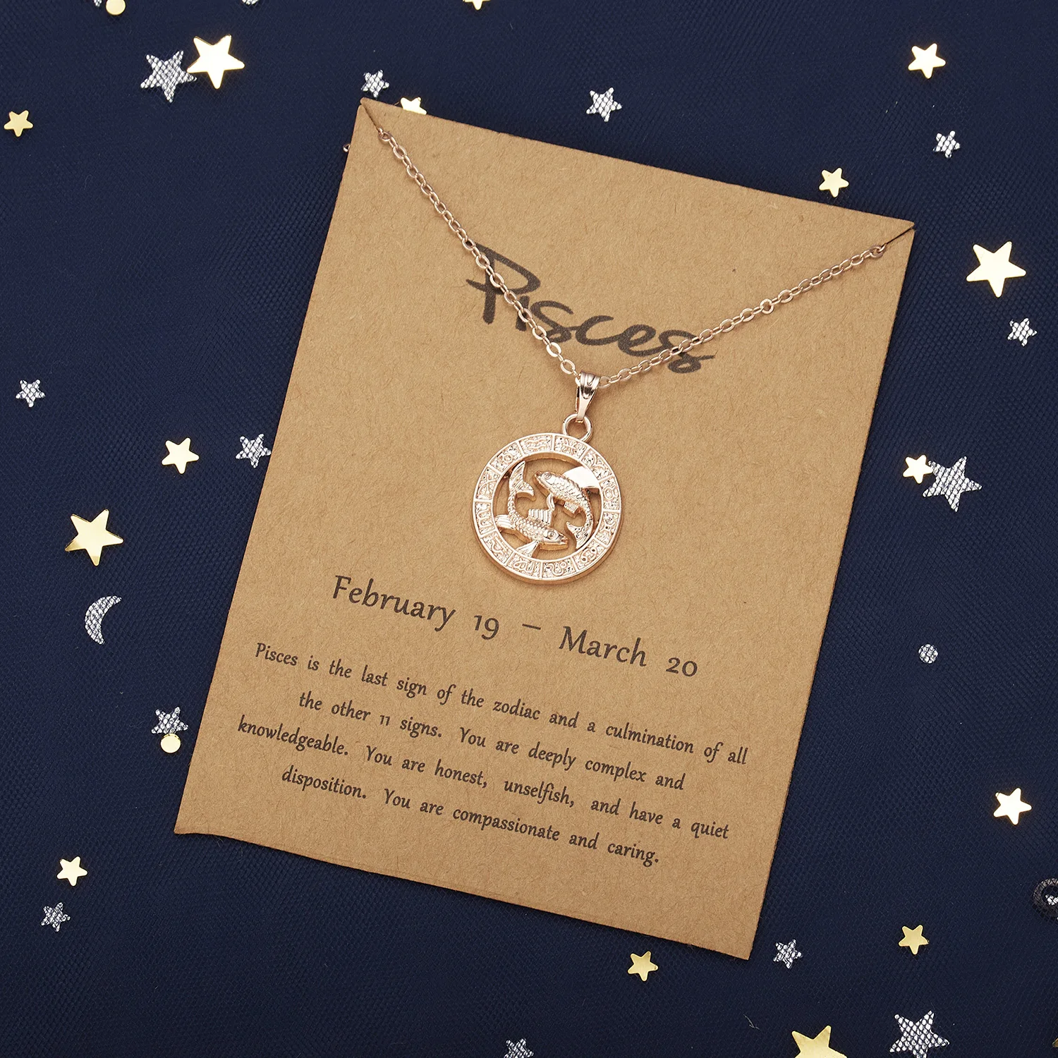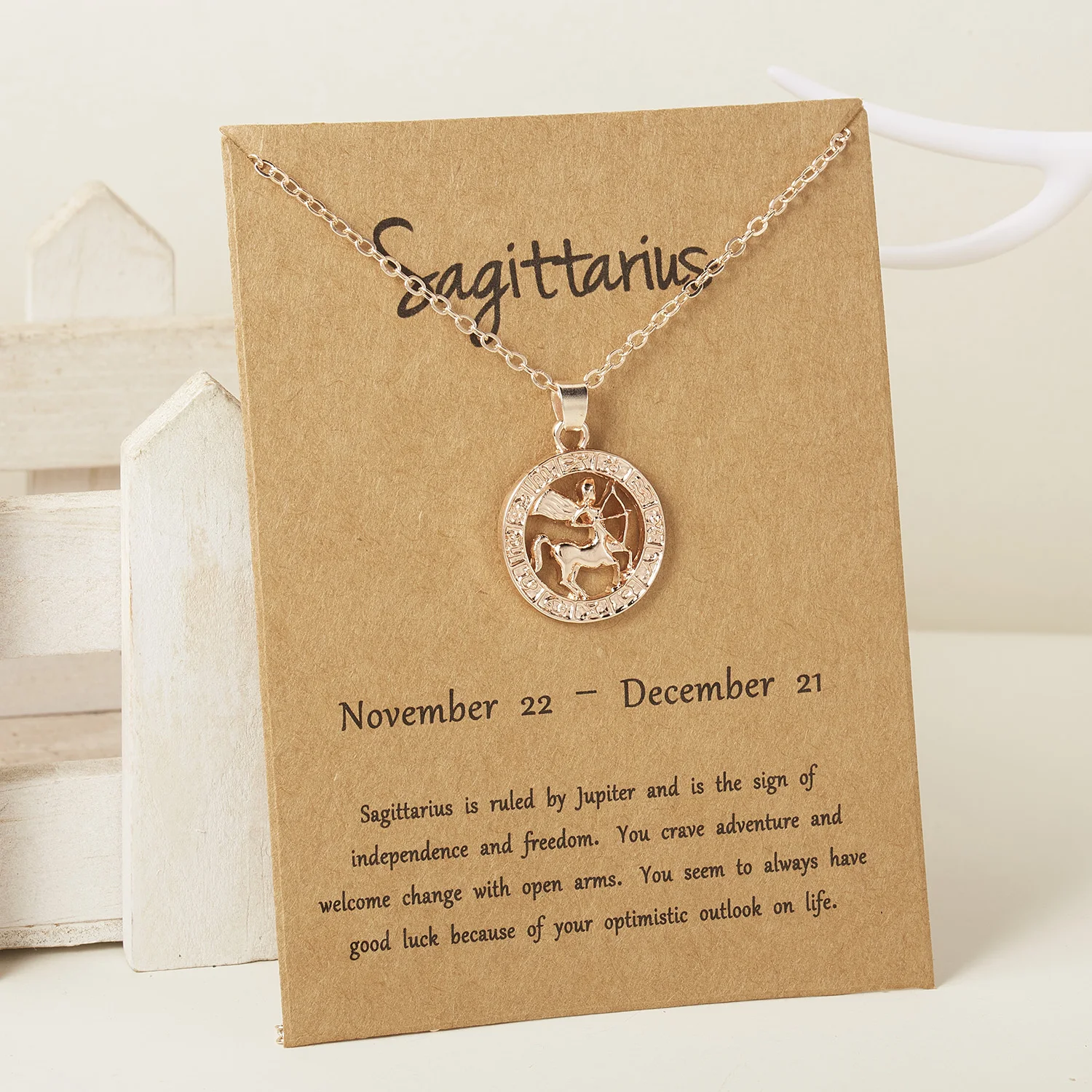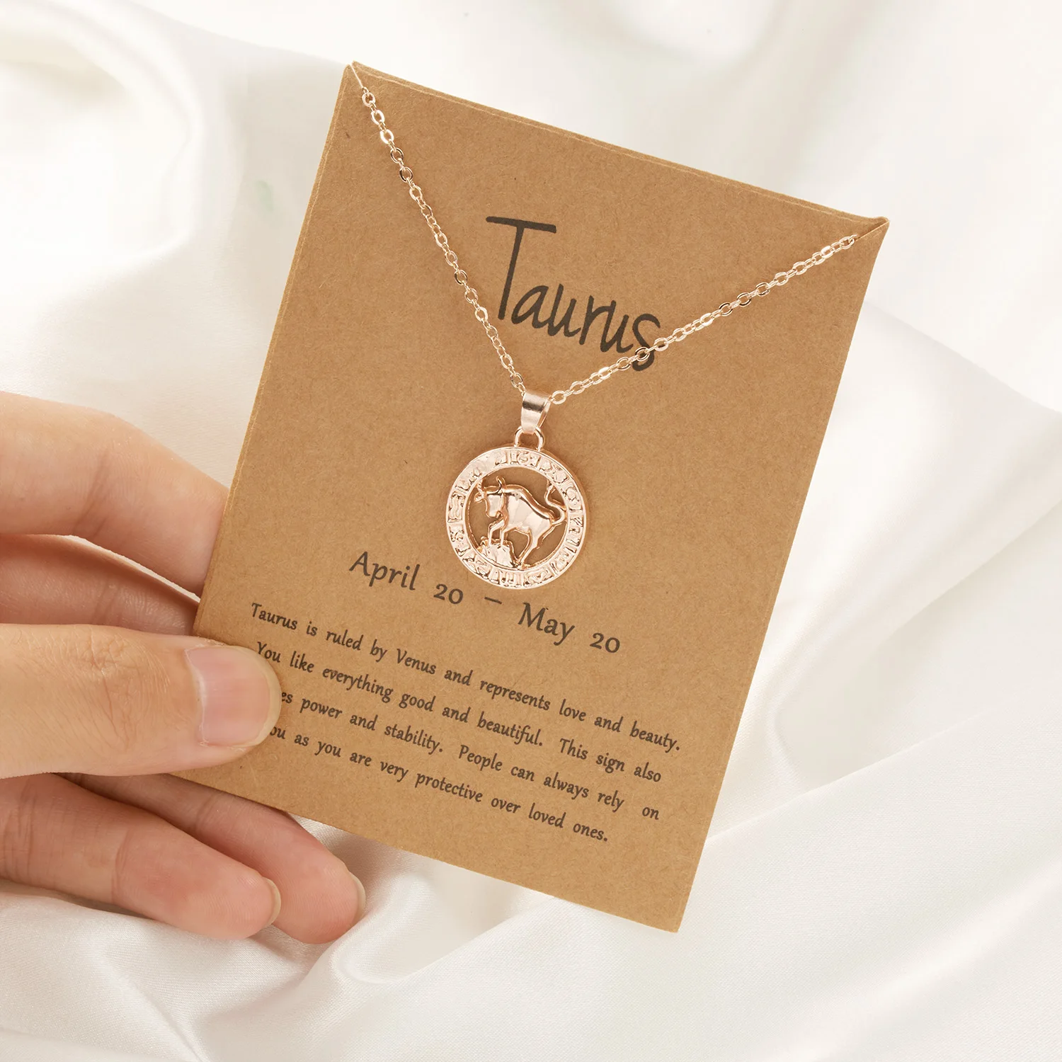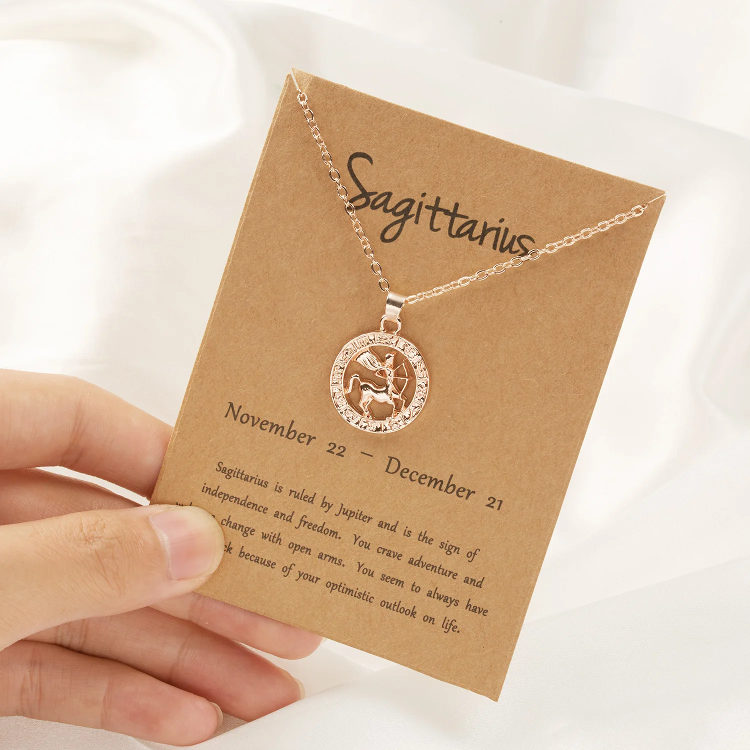 Ожерелье с подвеской Овен и Лев для мужчин и женщин, колье из металлического сплава под розовое золото с изображением 12 созвездий, Знак зодиака, ювелирные изделия