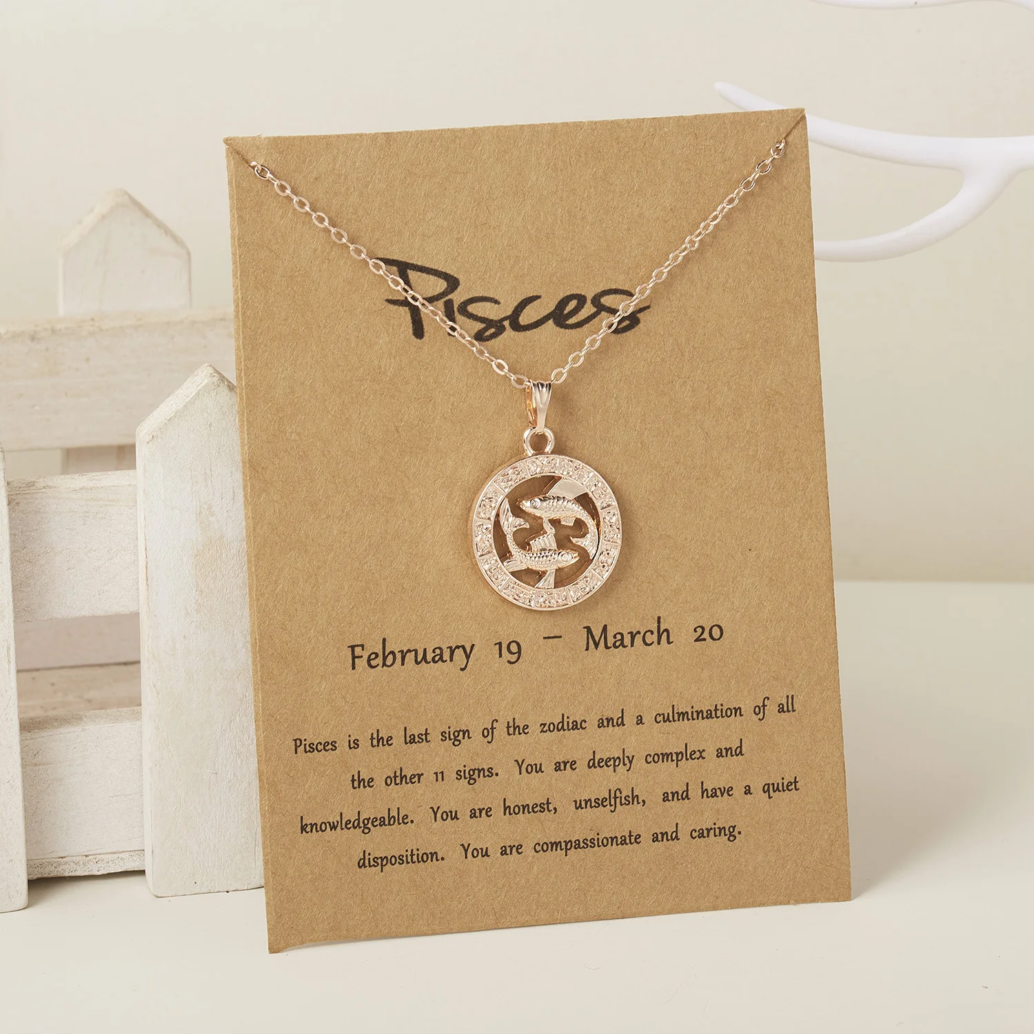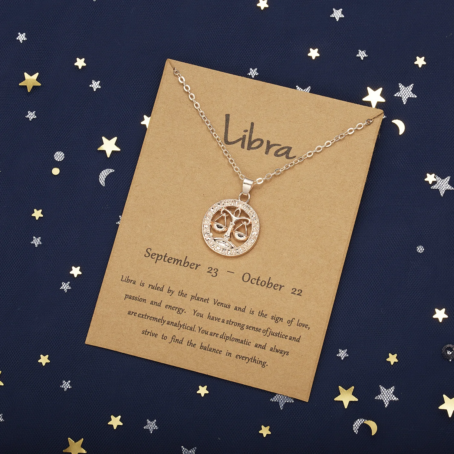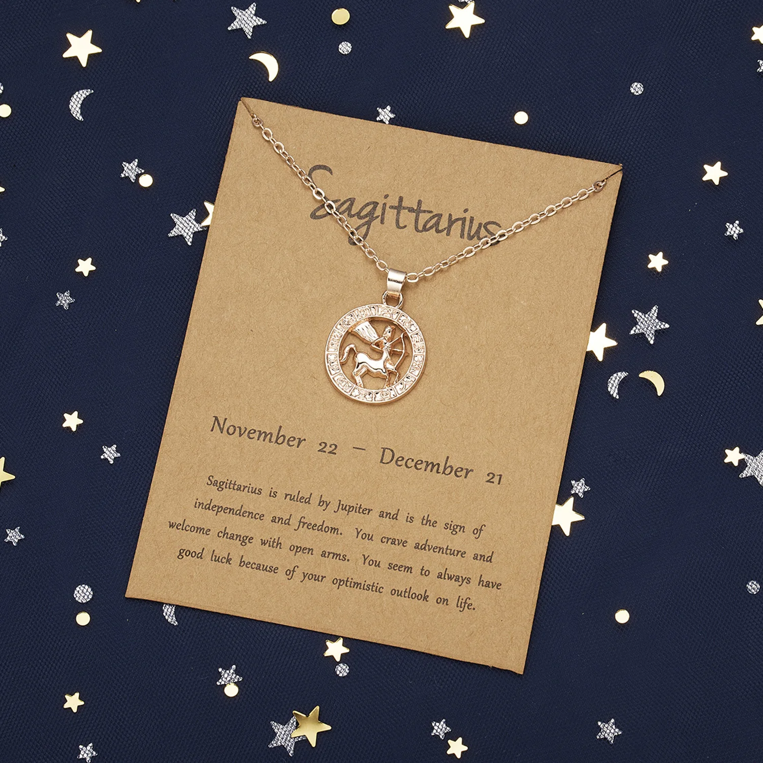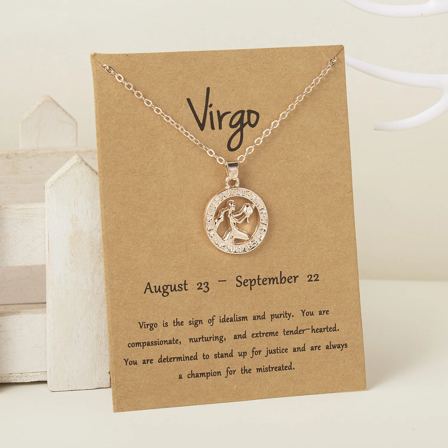 Ожерелье с подвеской Овен и Лев для мужчин и женщин, колье из металлического сплава под розовое золото с изображением 12 созвездий, Знак зодиака, ювелирные изделия