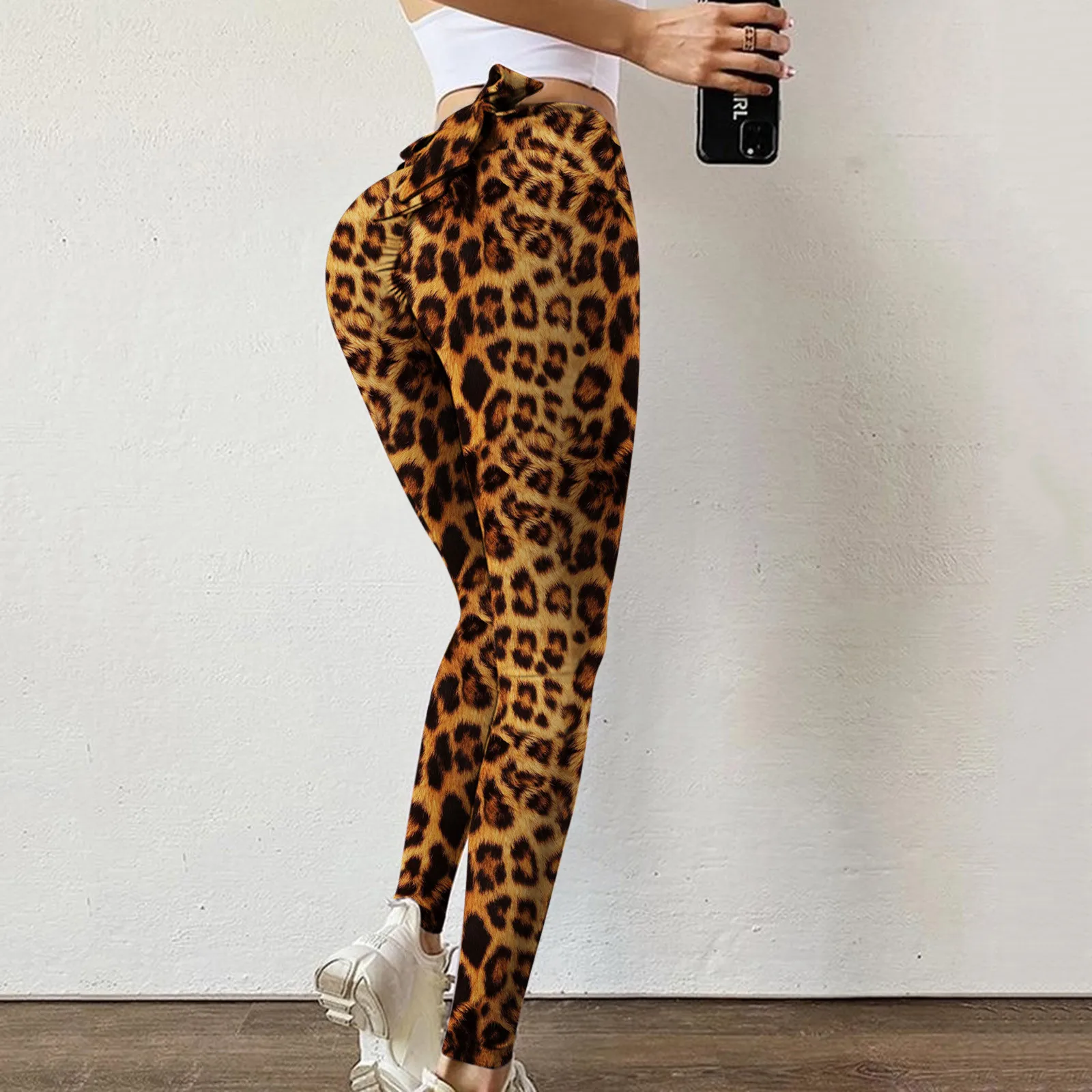 Леггинсы с бантом для тренировок, фитнеса, тренажерного зала, йоги, модные спортивные колготки с высокой талией и принтом, женские штаны для бега, спортивная одежда, Леггинсы для йоги d3