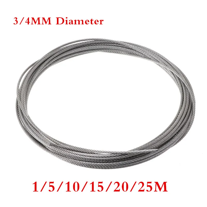 Спецификация: Тип: стальной трос Длина: 1 м, 5 м, 10 м, 15 м, 20 м, 25 м (опционально) Цвет: серебристый Материал: нержавеющая сталь Диаметр: 4 мм/3 мм