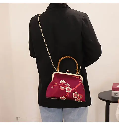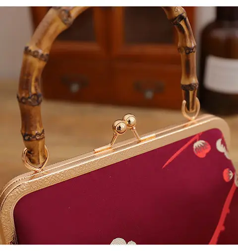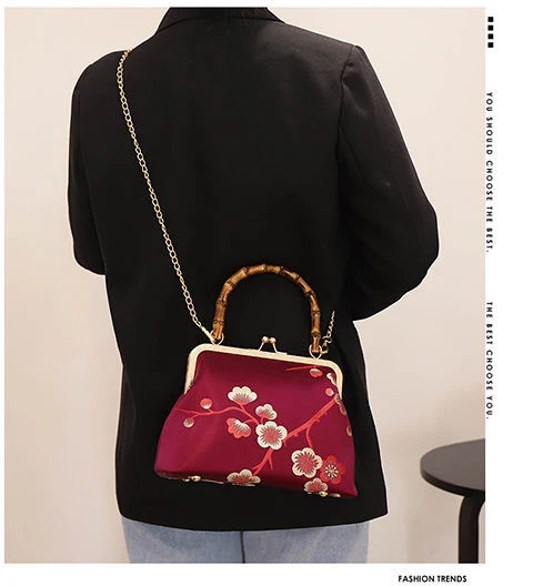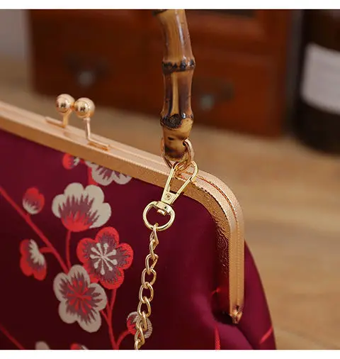 Новинка 2021, деревянная ручная сумка в японском стиле с цветами, женские сумки, винтажная сумка с замком, женская сумка через плечо, цепочка 120 см