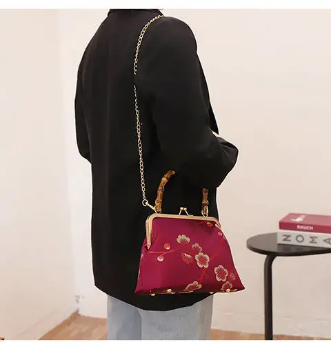 Винтажная сумка с цветочным замком, сумка на цепочке, женская сумка через плечо, новинка 2021, деревянная ручная сумка, женские сумки, кошельки