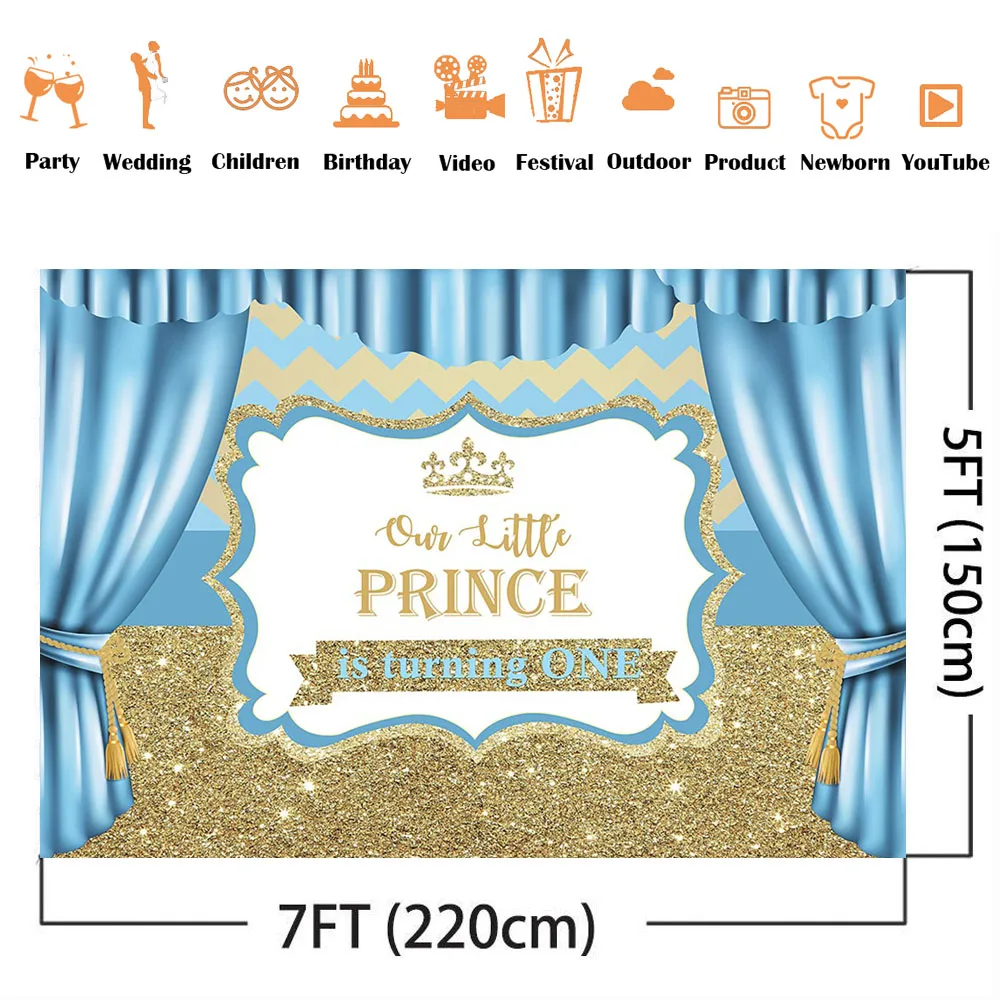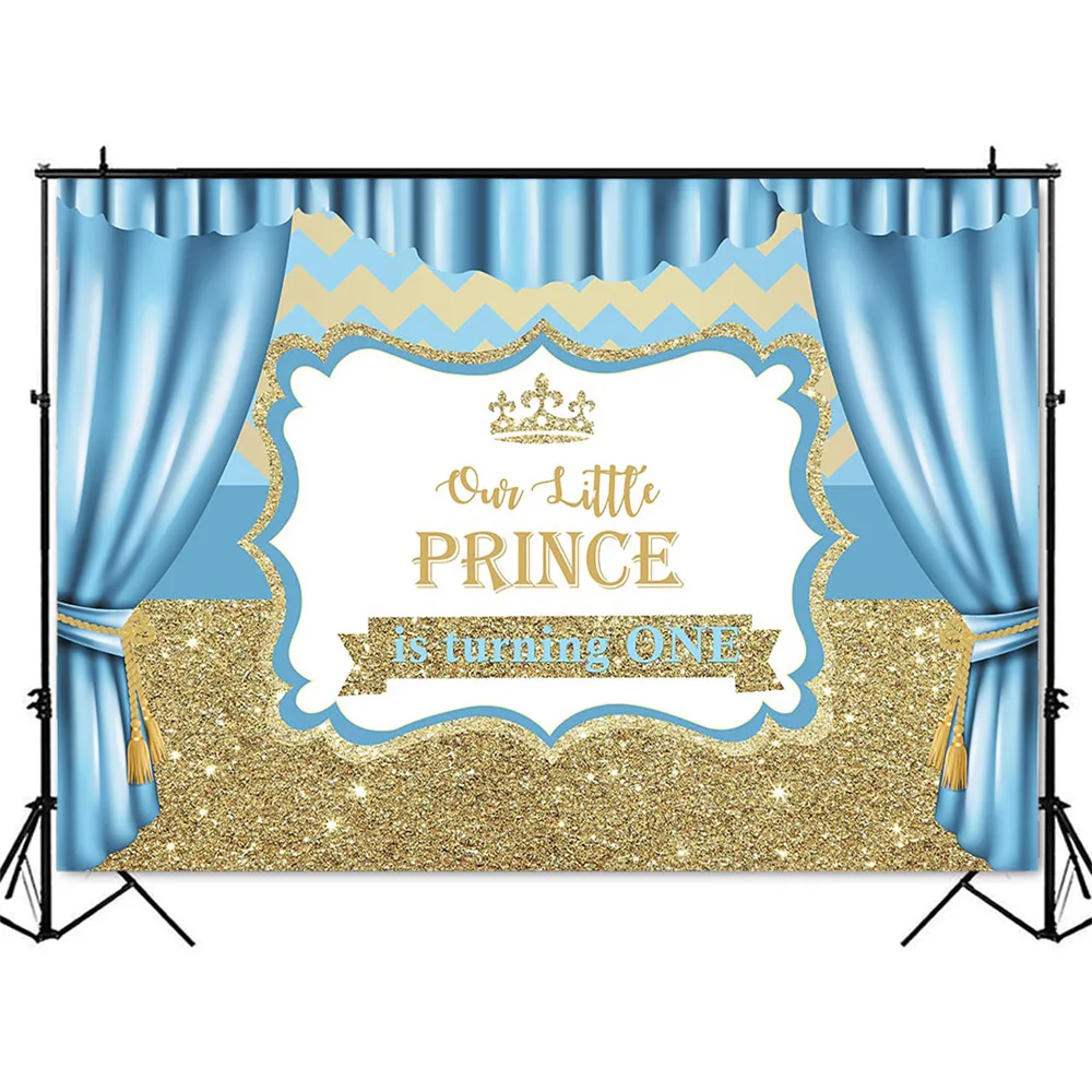 Голубой мальчик золотой блеск 1-й День рождения фон для маленького Маленького принца фото фон 1-й 2-й 3-й день рождения украшение