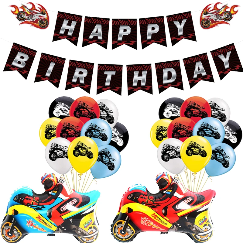 Флаг гоночного мотоцикла, шары, гоночные автомобили в клетку, баннеры, вечеринка на день рождения, игрушка для детей и взрослых, украшение для мотоцикла, шары
