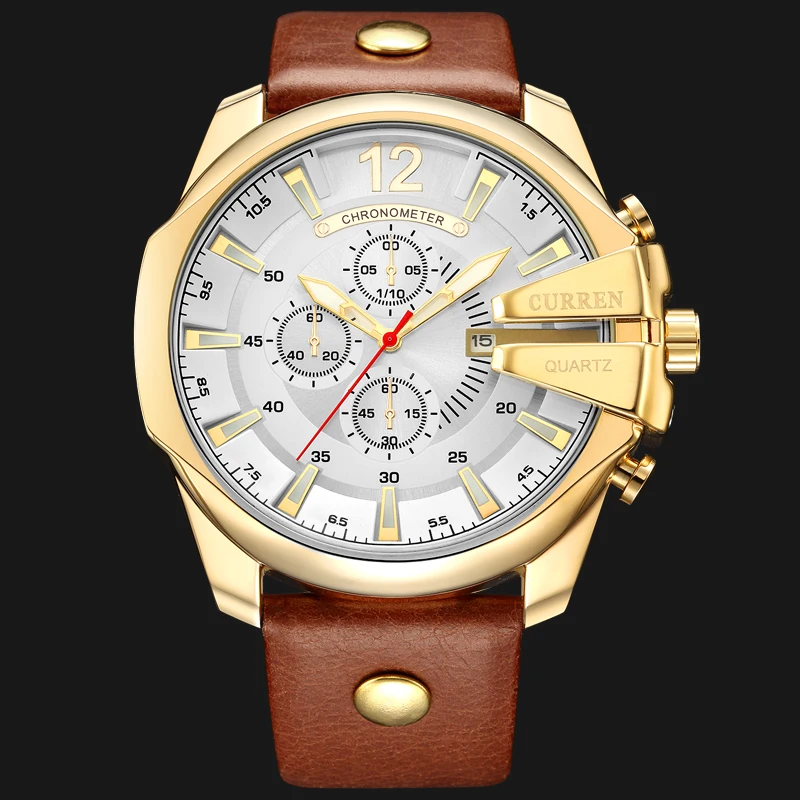 Мужские кварцевые наручные часы CURREN, повседневные, спортивные, с ремешком из натуральной кожи, 2021