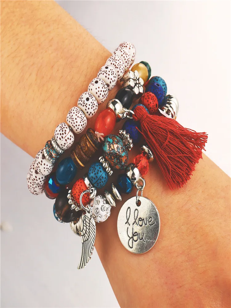 Европейский и американский популярный браслет из бисера с кристаллами и опалом креативный Ретро многокруглая кисточка ручная цепочка