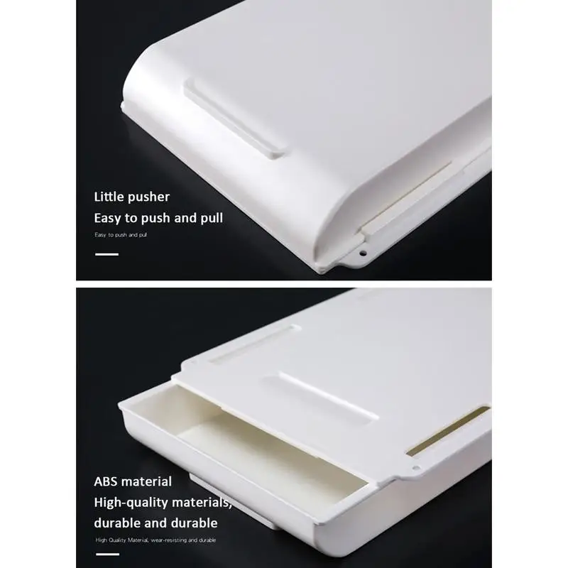 Описание:Скрытая коробка для хранения, маленькая коробка может держать много вещейРучки, линейки, компасы, бумажные полотенца, ножницы, мобильные телефоны и другие предметыКлей большой площади имеет хорошую несущую способность и не падает близко к поверхностиДва вида способов установки могут быть оснащены винтами и бесшовным клеемВместительное пространство может не только содержать канцелярские принадлежности и косметику, но и улучшать стиль.Скрытый ящик пылезащитный и пыленепроницаемый, ящик плавно тянется, и уплотнение хорошее, избегая скопления пыли в коробкеНижняя ручка предназначена для того, чтобы ее легко взять, и ее можно легко вытянутьНе маркировочный клей, легко оторвать и установитьМатериал ABS, высококачественный материал, прочный и долговечныйХарактеристики:Название продукта: ящик для храненияЦвет: белый, серыйРазмеры: 22*15,5*3,5 см (Большие размеры Размеры), 22*11*3,5 см (маленький размер Размеры)Материал: АБС-пластикПрименение: стол, офисУстановка:1. Оторвите заднюю часть бесшовного клея2. Установите ящик в соответствующее положение3. Удерживайте в течение 30 секунд вручную4. Использование после 24 часов бездействияПосылка включает в себя:1 * коробка для хранения