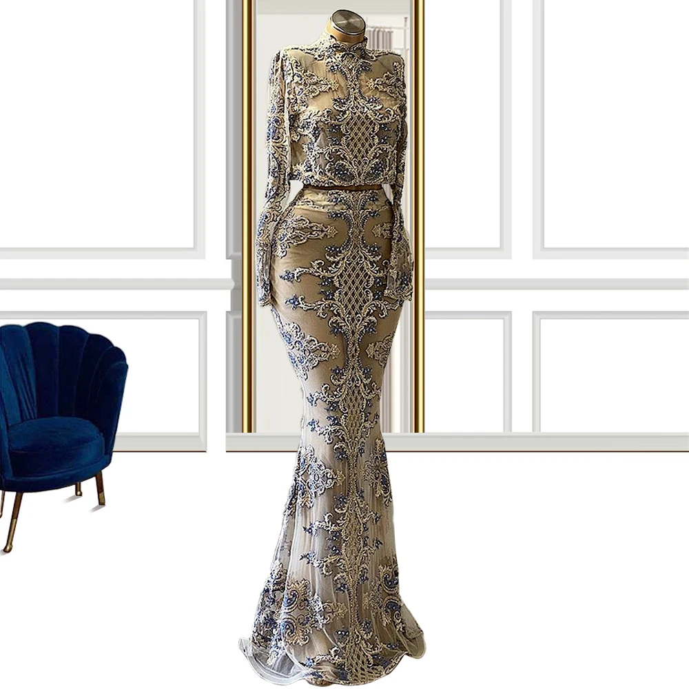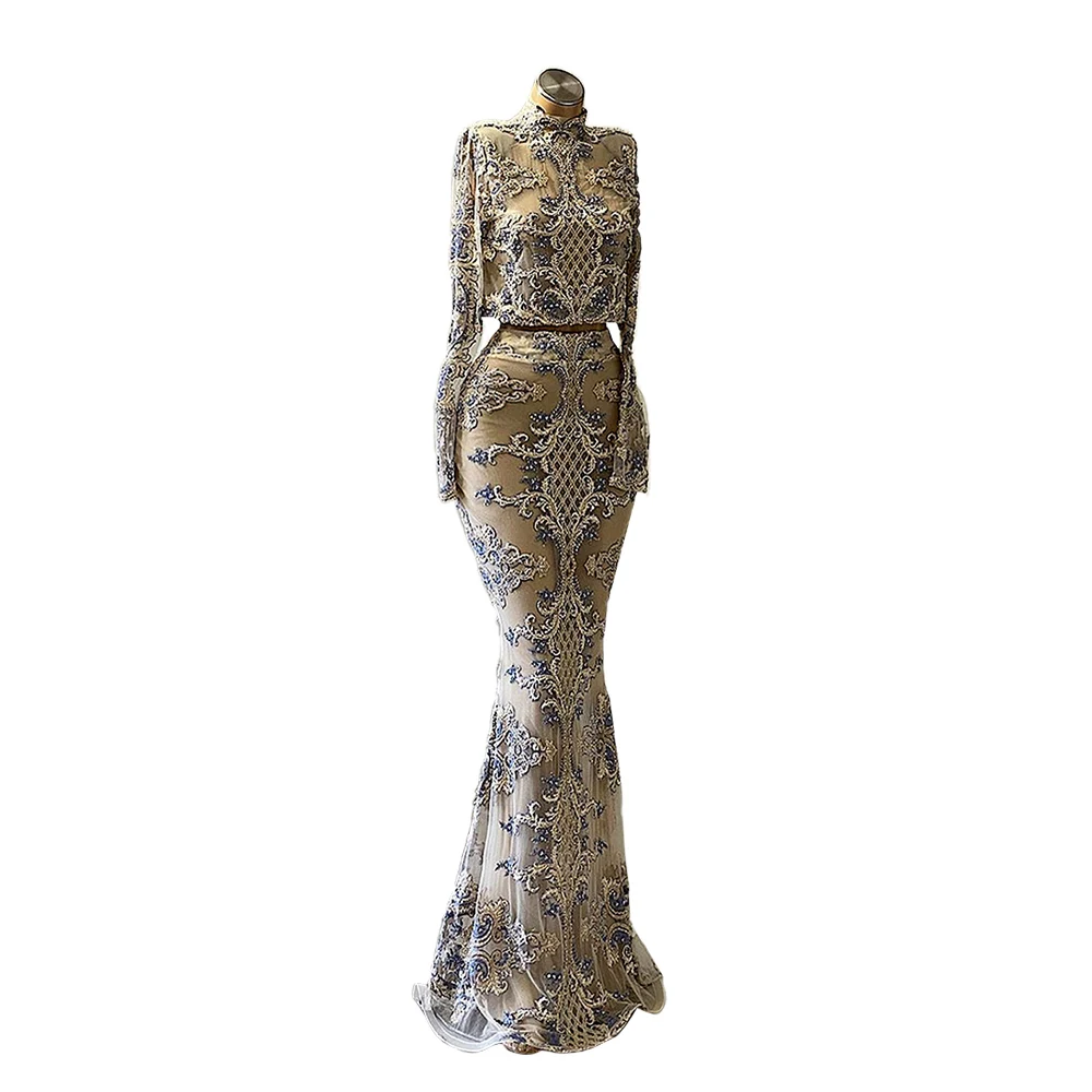 Мусульманское арабское официальное вечернее платье с длинным рукавом из двух частей 2022 цвет шампанского кружевное женское платье для вечевечерние свадебное платье