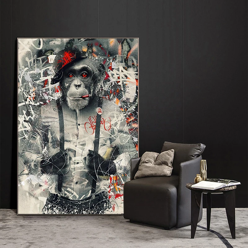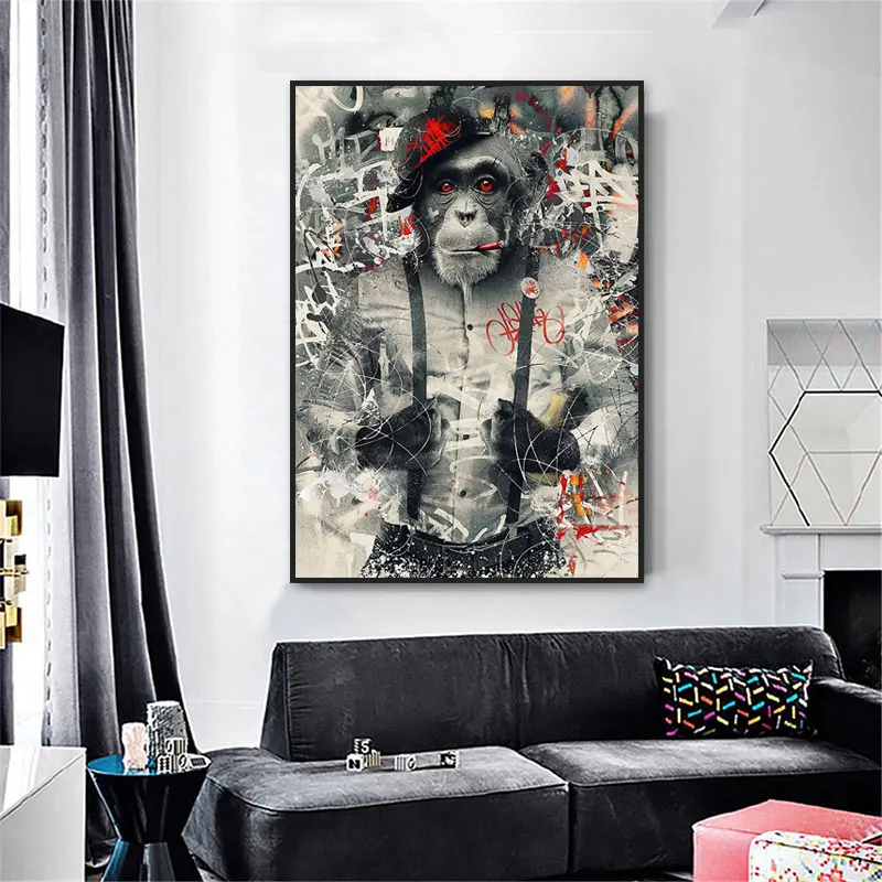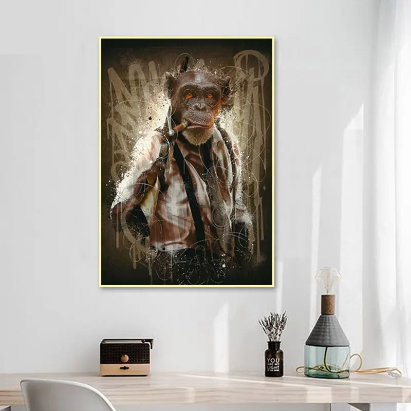 Плакаты и принты курительной обезьяны, современное художественное украшение на стену, животные, граффити, обезьяна, холщовая живопись, настенные картины для гостиной