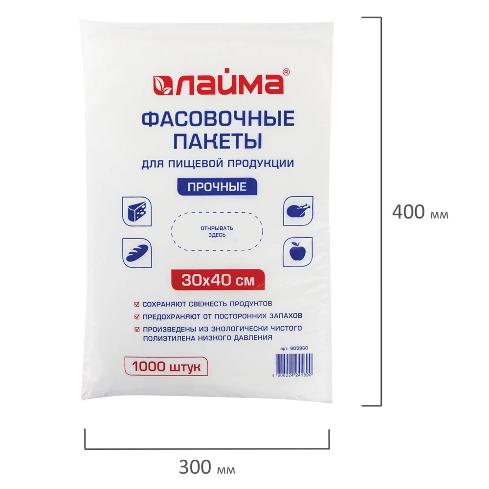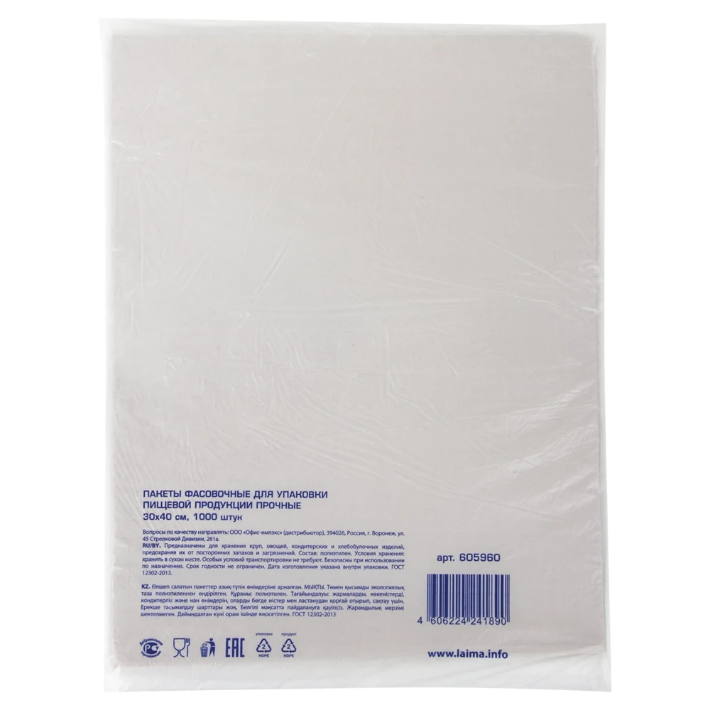Пакеты фасовочные 30х40 см, Комплект 1000 шт., Пнд, 10 мкм, Прочные, евроупаковка, Лайма