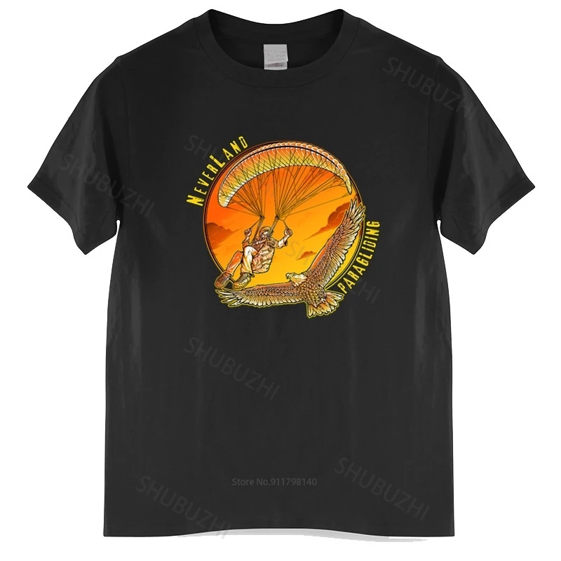 Мужская черная футболка Never Land парапланеризм, Мужская футболка с орлом, парапланерист, модная футболка унисекс, футболка европейского размера