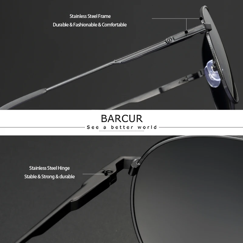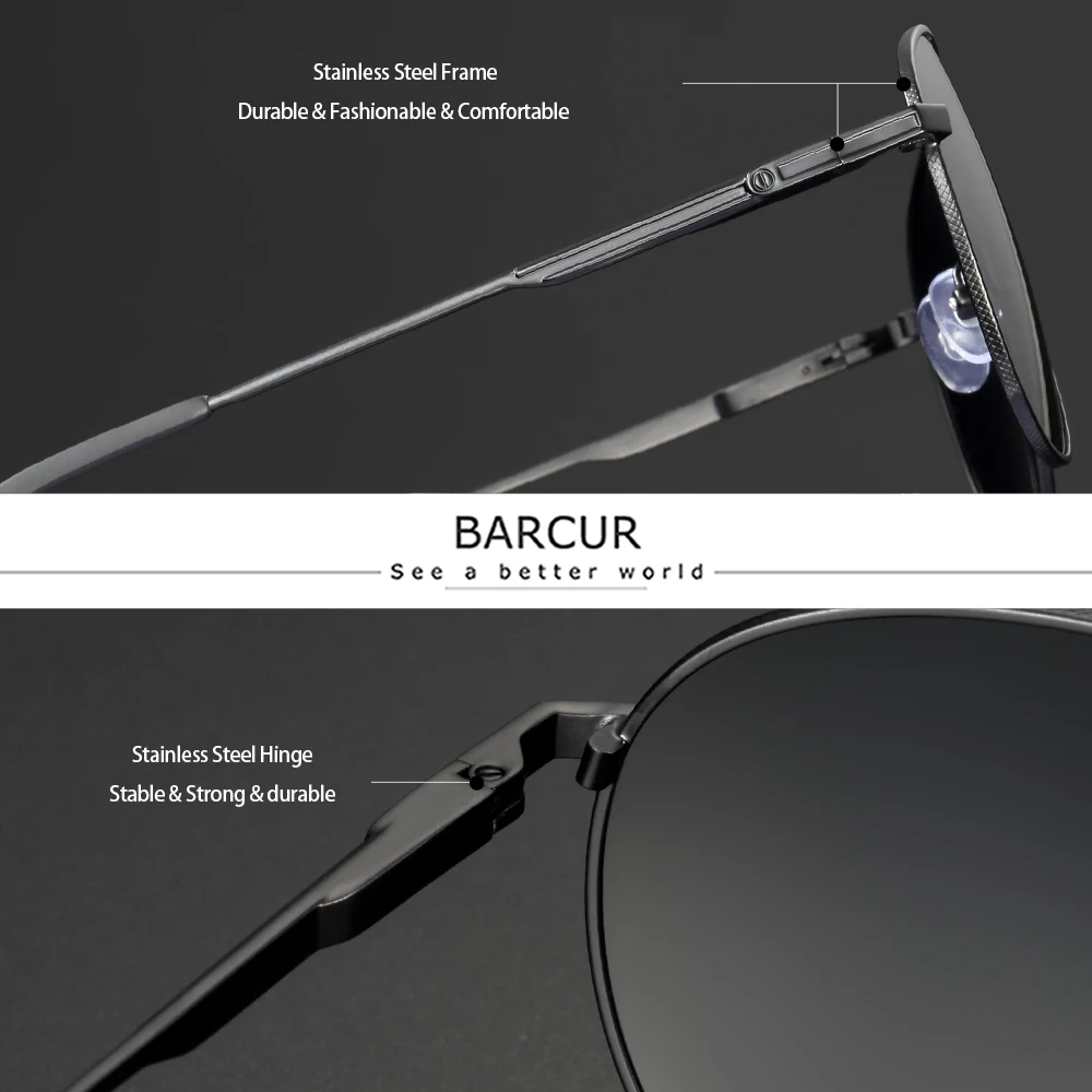 BARCUR Pilot Солнцезащитные очки мужские поляризованные солнцезащит...