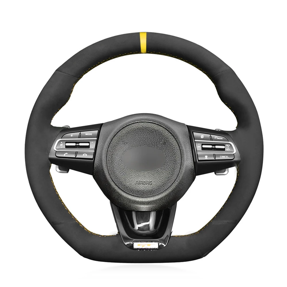 Черный замшевый желтый Маркер DIY, сшитый вручную чехол рулевого колеса автомобиля для Kia Stinger 2017 2018 2019 2020