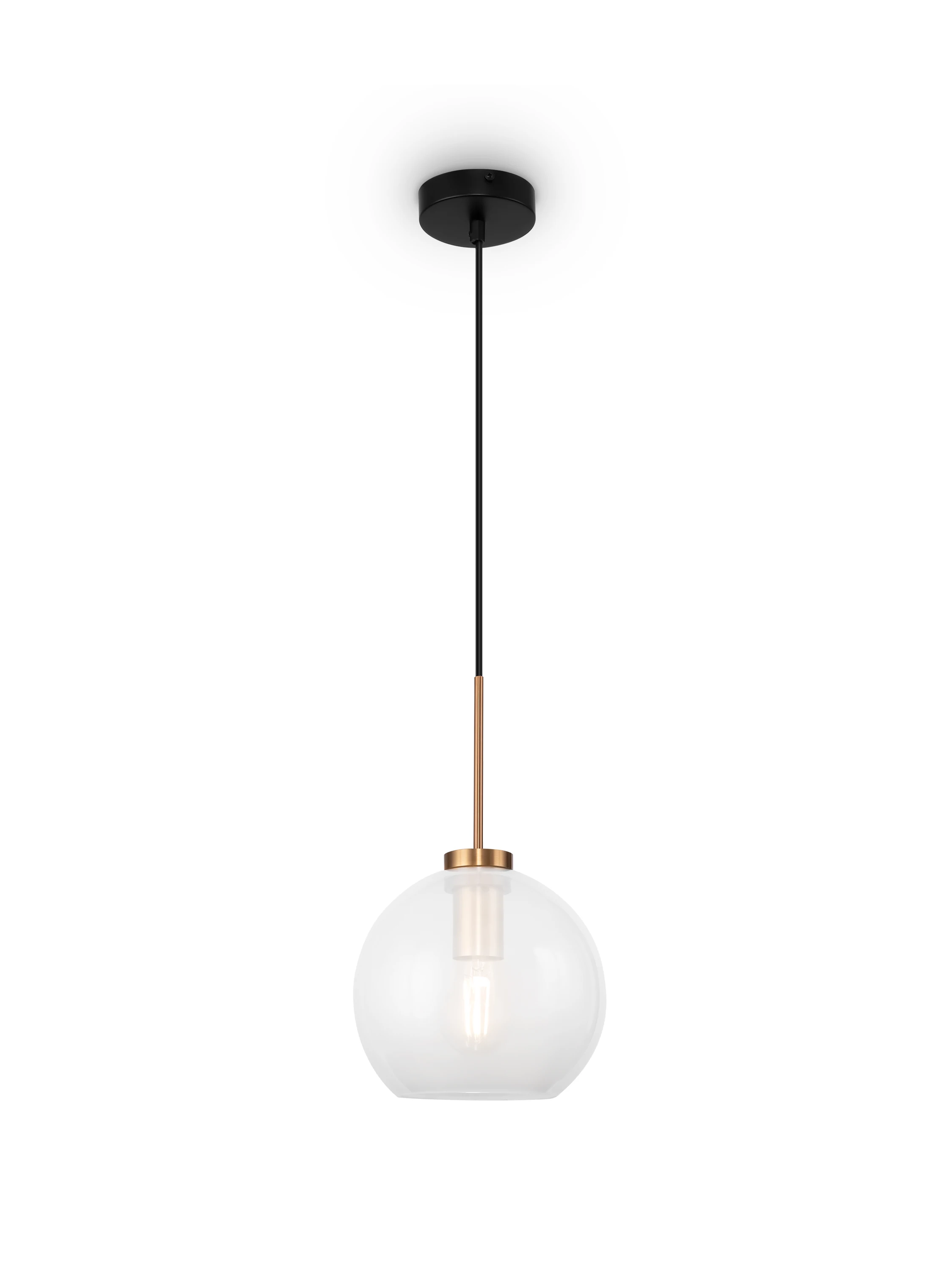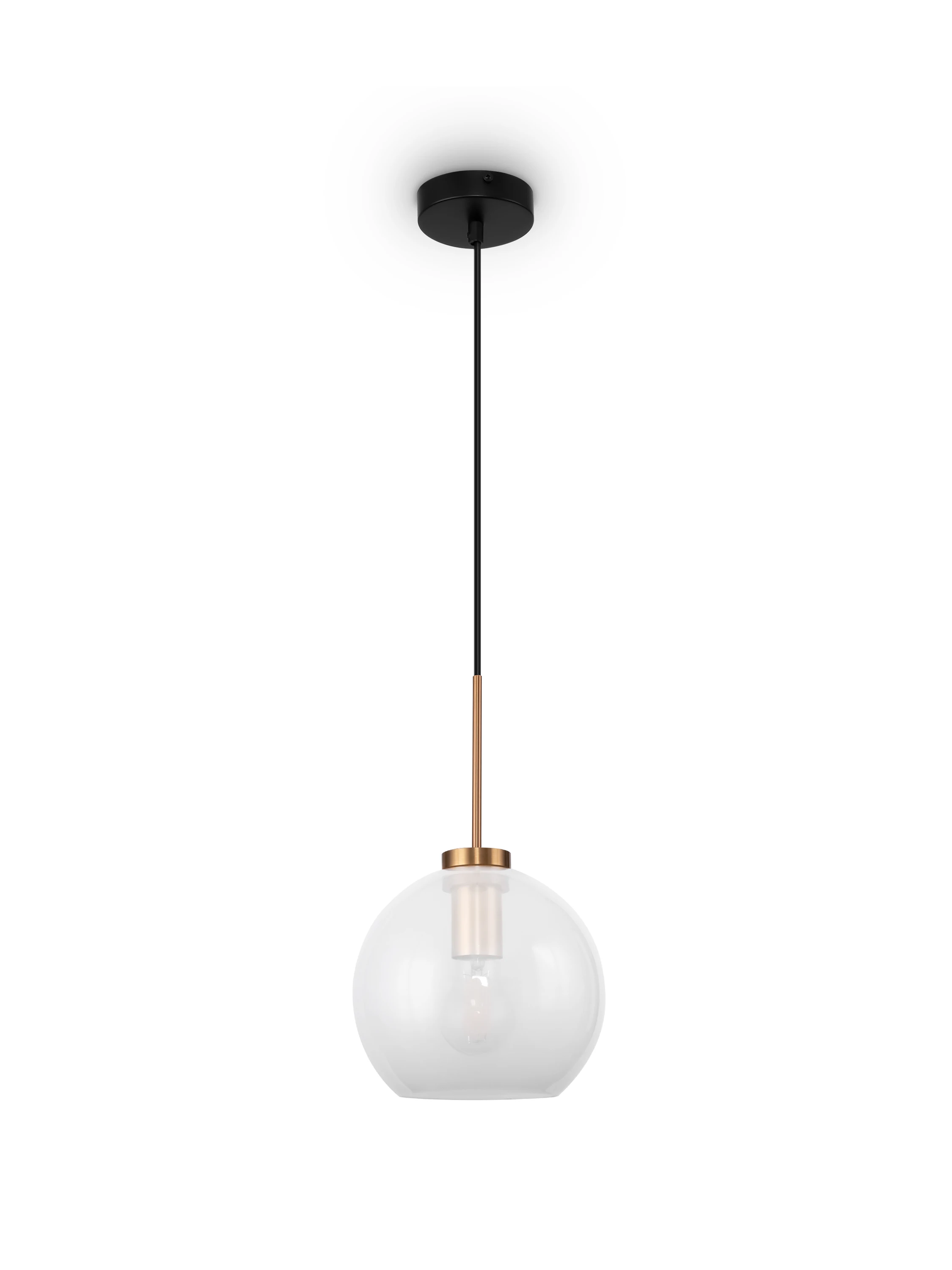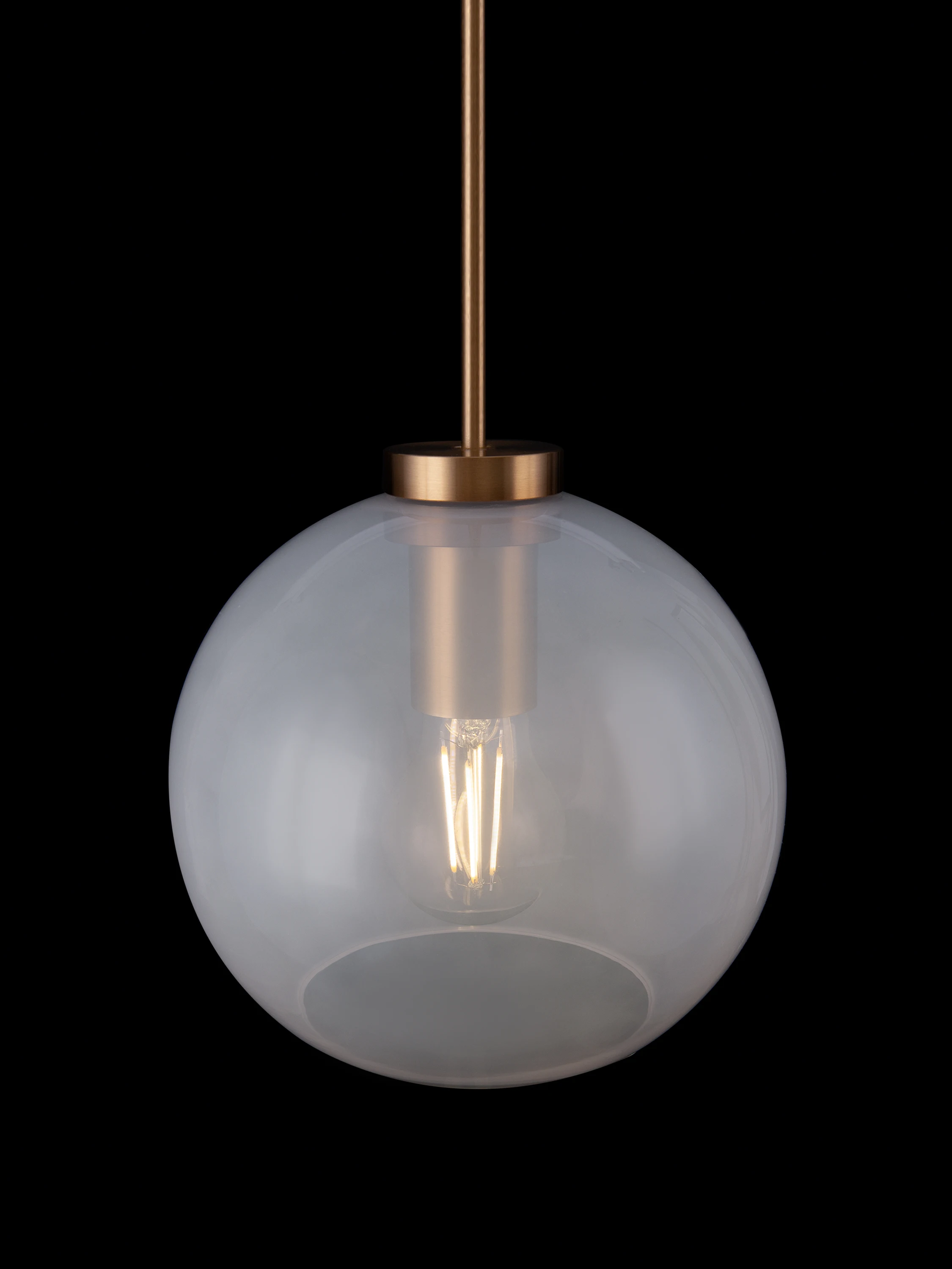 Серия Bravis с трендовым дизайном – находка для современного интерьера. Металлическая арматура светильника представлена в двух оттенках: черный и латунь. Лаконичное исполнение сосредотачивает внимание смотрящего на модной сферической форме плафона. Он выполнен из стекла в прозрачном и матовом белом цвете. Всего серия предлагает три различных цветовых сочетания: прозрачный + черный, прозрачный + латунь, матовый белый + латунь. Широкий выбор позволяет найти оптимальный вариант с учетом палитры интерьера. Подвесы можно комбинировать в группы для яркой зональной и основной подсветки, а можно использовать по отдельности. Плафон-сфера обеспечивает мягкое и равномерное освещение, которое отлично подойдет для гостиной, спальни, кухни, интерьеров кафе, ресторанов и творческих студий. Минималистичный дизайн актуален для таких современных стилей как лофт, модерн, скандинавский, техно, минимализм. Всего в серии представлено 6 подвесных светильников разного диаметра, а значит, можно выбрать подходящую модель, учитывая размеры помещения.