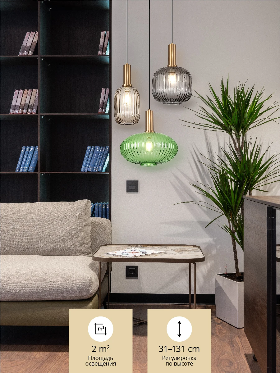 Цветное стекло ретро-тренд, актуализированный в последние годы подчеркивает индивидуальность серии Zelma, объединившей традиционный дизайн и современные черты. Металлическая арматура цвета латуни образует гармоничный дуэт с плафонами оригинальных обтекаемых форм. Их фактурная поверхность представлена в трех оттенках: янтарном (светлый и темный) и зеленом цвете. Серию составляют три подвесных светильника различного диаметра 13 см, 20 см, 30 см. Можно использовать подвесы по отдельности, для подсветки функциональных зон, а можно комбинировать в группы, создавая атмосферные и яркие световые ансамбли. Светильники будут отлично смотреться как в жилых помещениях, так и в интерьерах кафе, ресторанов. Эклектичный дизайн позволяет использовать модели в современных и классических интерьерных решениях: от модерна и ар-деко до фьюжн и лофта.
