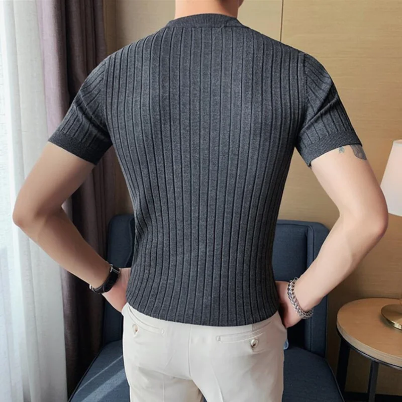 Новинка 2022, Мужская однотонная вязаная рубашка-поло в полоску из ...