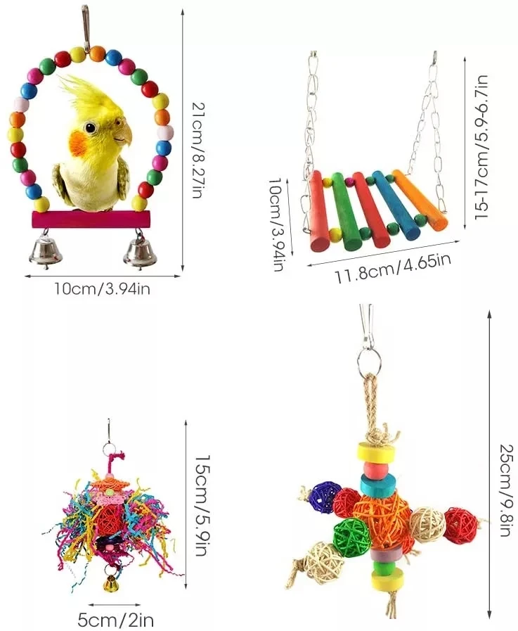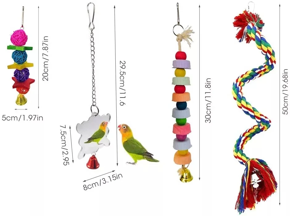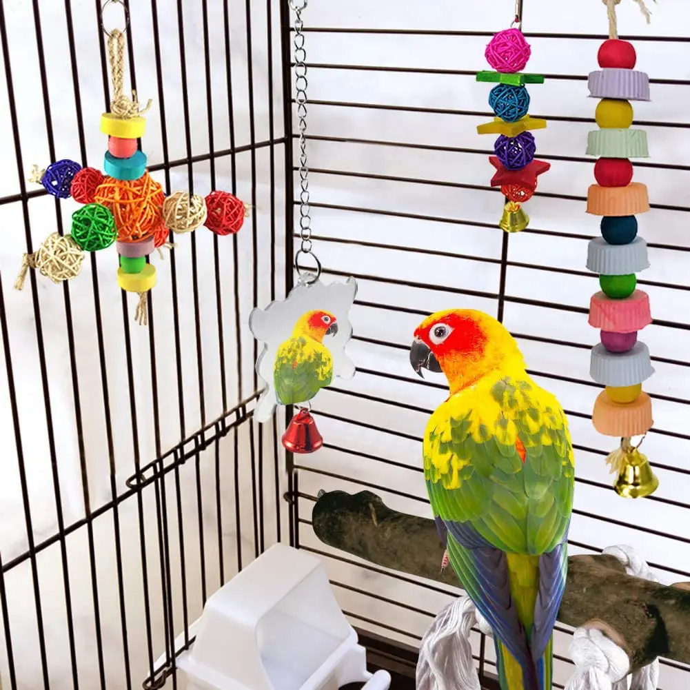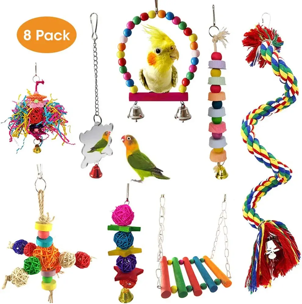 8 шт. попугай игрушки птицы игрушки качели птица подвесная жевательная игрушка птичья клетка игрушка качающийся колокол птица попугай клетка аксессуары для животных принадлежности