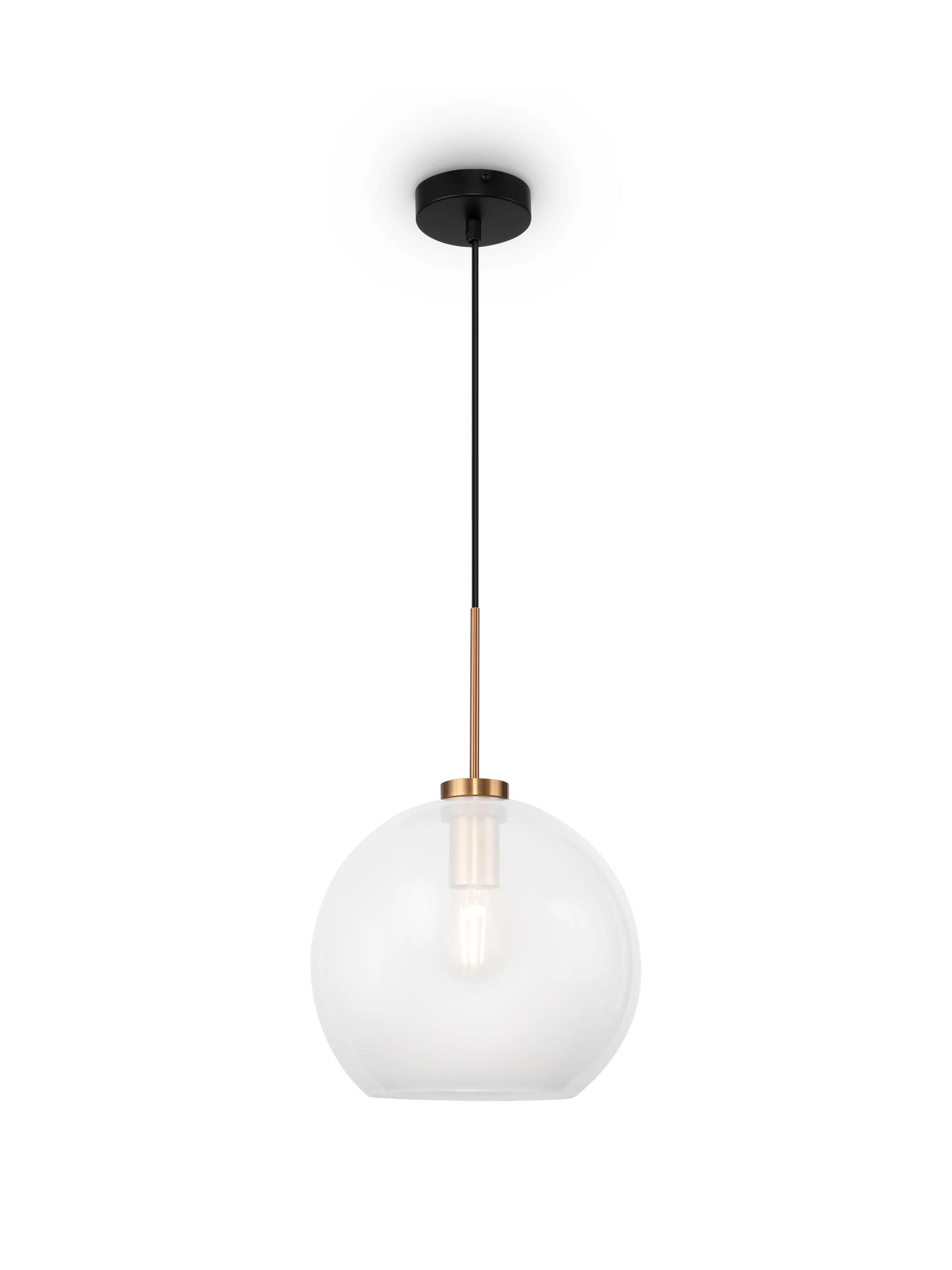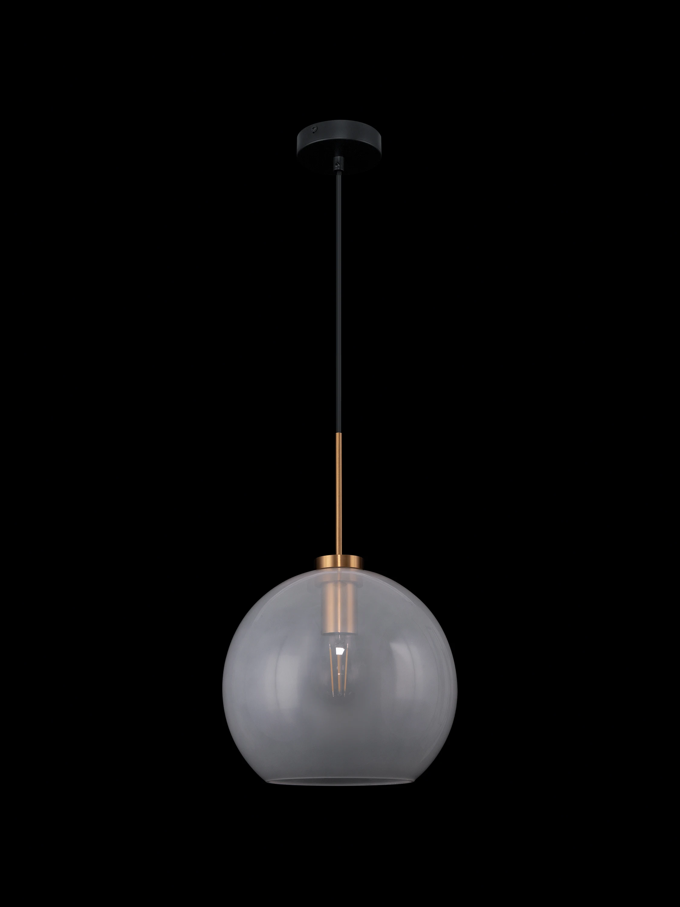 Серия Bravis с трендовым дизайном – находка для современного интерьера. Металлическая арматура светильника представлена в двух оттенках: черный и латунь. Лаконичное исполнение сосредотачивает внимание смотрящего на модной сферической форме плафона. Он выполнен из стекла в прозрачном и матовом белом цвете. Всего серия предлагает три различных цветовых сочетания: прозрачный + черный, прозрачный + латунь, матовый белый + латунь. Широкий выбор позволяет найти оптимальный вариант с учетом палитры интерьера. Подвесы можно комбинировать в группы для яркой зональной и основной подсветки, а можно использовать по отдельности. Плафон-сфера обеспечивает мягкое и равномерное освещение, которое отлично подойдет для гостиной, спальни, кухни, интерьеров кафе, ресторанов и творческих студий. Минималистичный дизайн актуален для таких современных стилей как лофт, модерн, скандинавский, техно, минимализм. Всего в серии представлено 6 подвесных светильников разного диаметра, а значит, можно выбрать подходящую модель, учитывая размеры помещения.