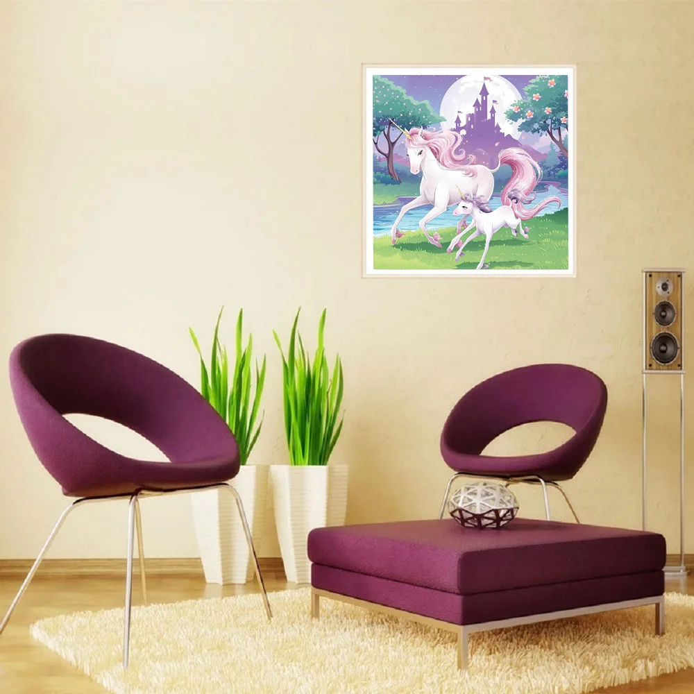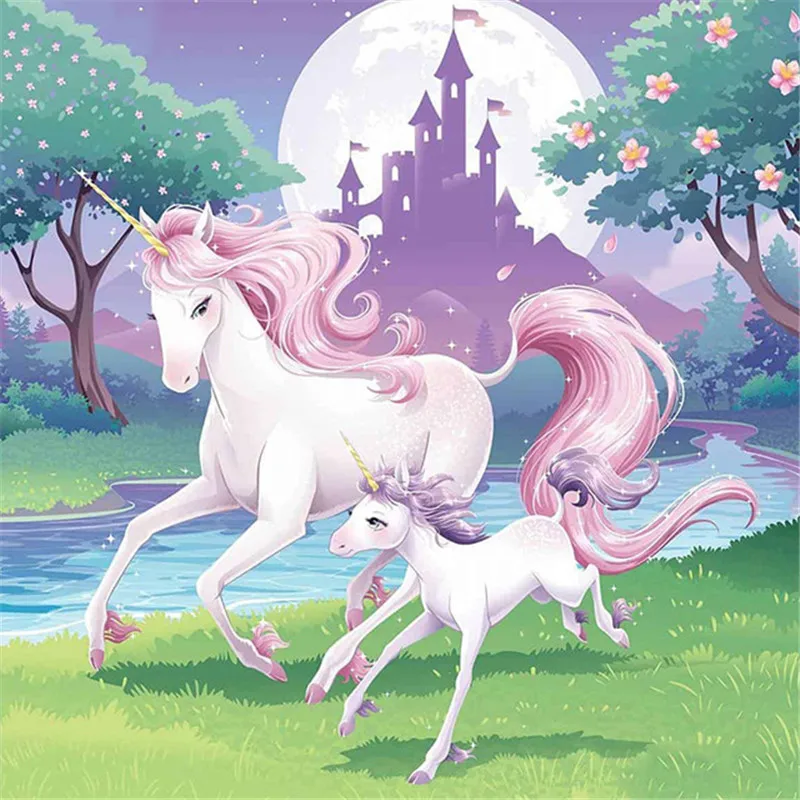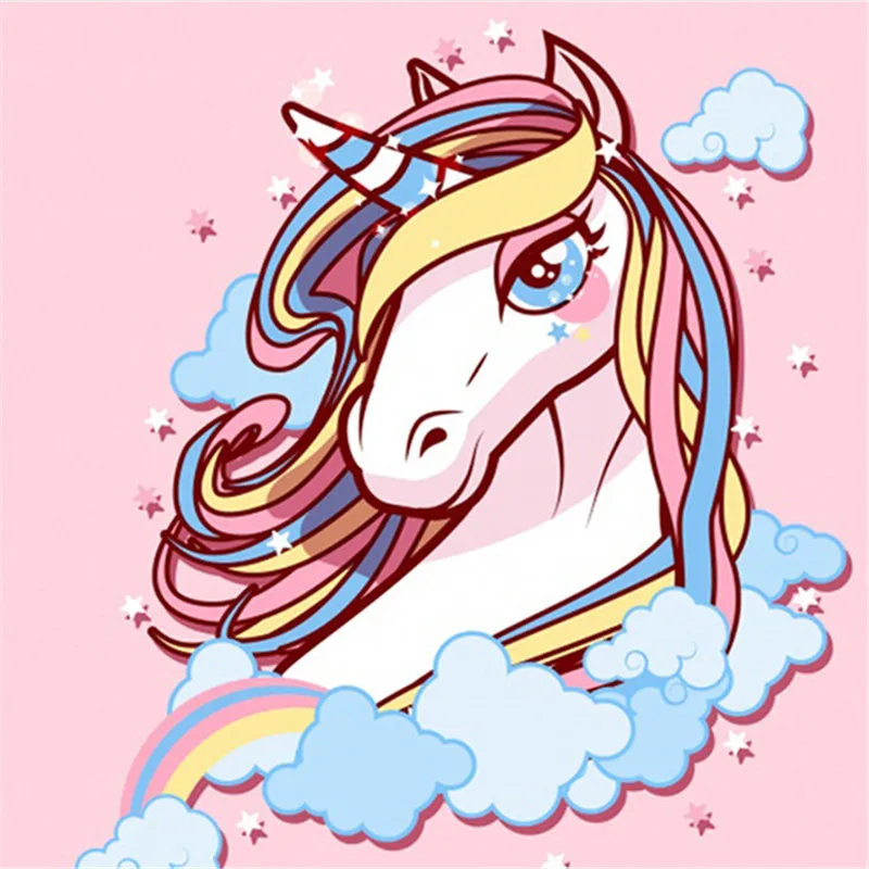 Алмазная 5d-картина сделай сам, полноразмернаякруглая вышивка мультяшный Единорог, 3D вышивка крестиком, подарок для домашнего декора