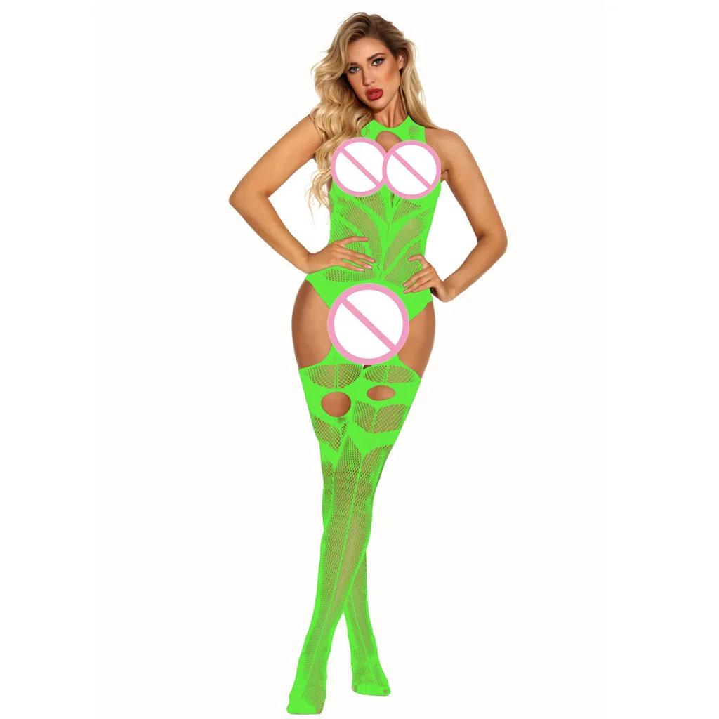 Комбинезон женский сетчатый, Эротическое нижнее белье, Дамское Белье с открытой промежностью