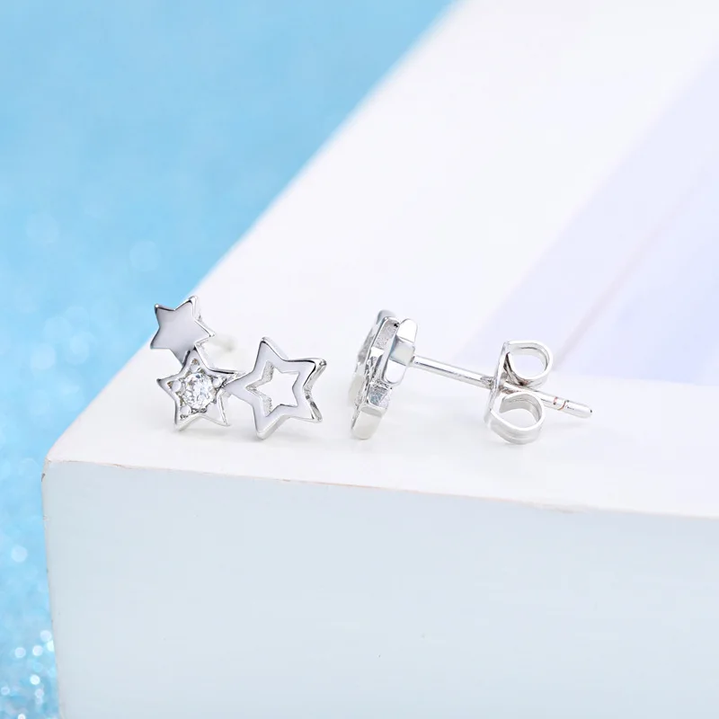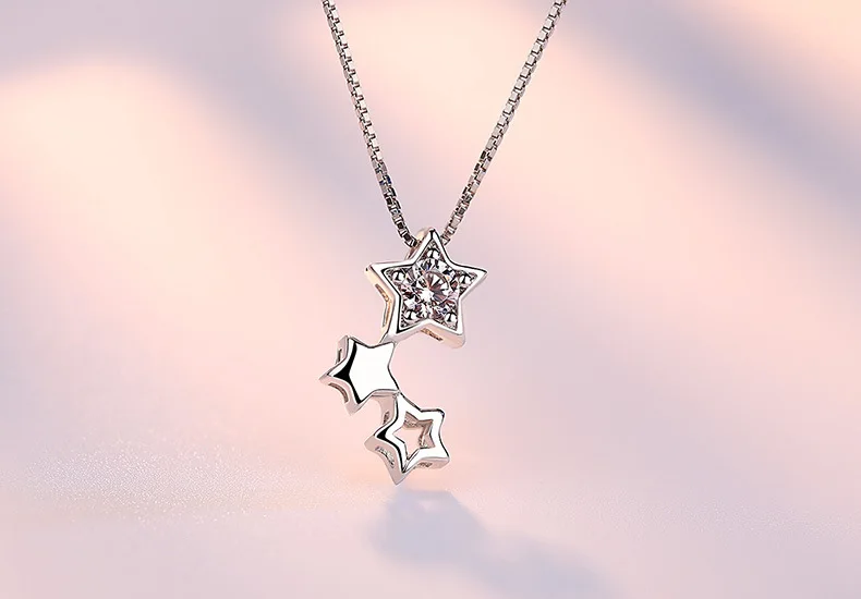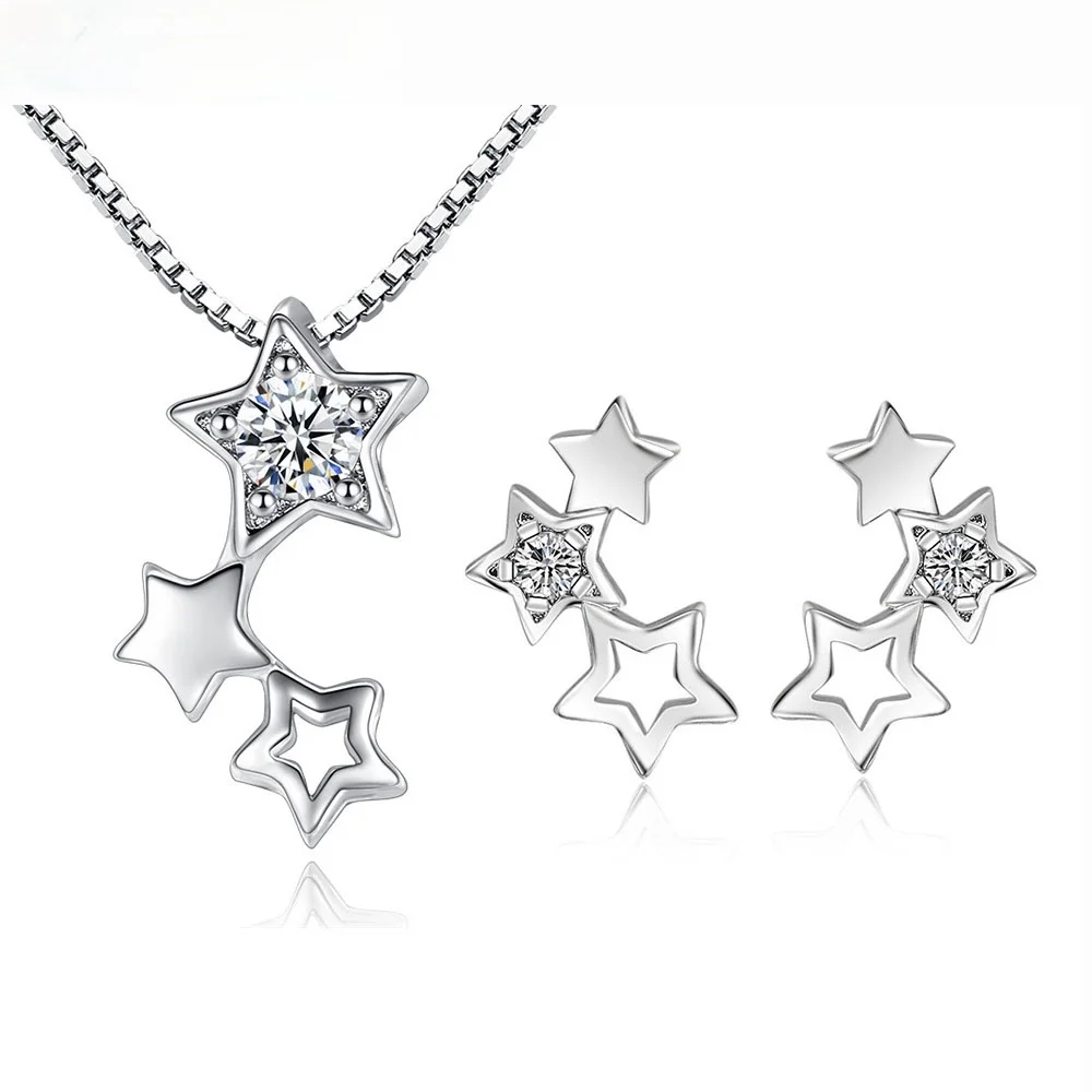 925 стерлингового серебра ювелирные наборы простой циркон Звезда Ожерелье + серьги для женщин подарок для девочки