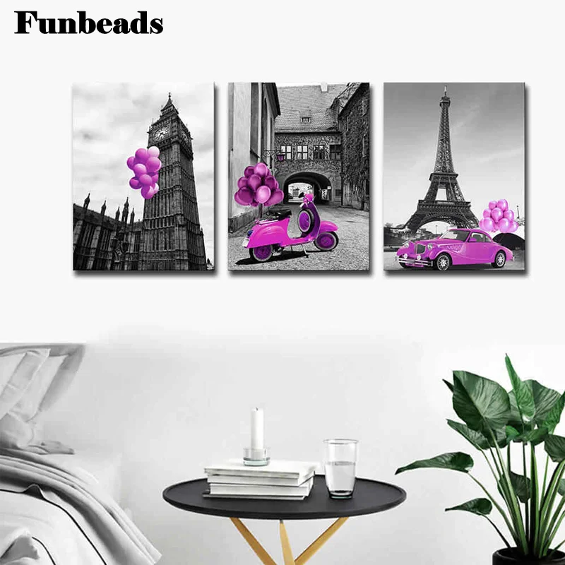 5D DIY, розовый автомобиль, здание, алмазная вышивка крестиком, алмазная вышивка, мозаика, домашний декор, цифровое искусство FF347
