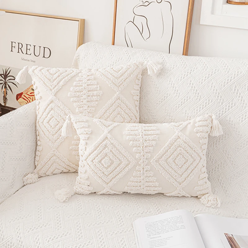 Ленточки Чехлы 45x45 см30x50 см, бежевого и белого цветов Декоративные Чехлы для подушек Подушка Чехол Наволочка на квадратную бохо стиле макраме Подушка Чехол