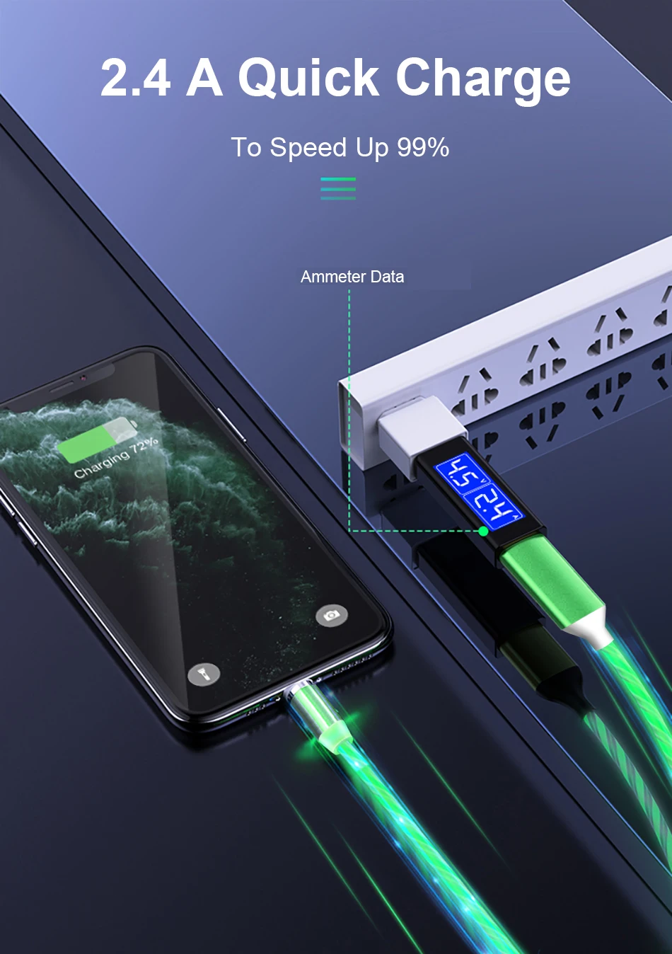 Магнитный кабель со светодиодной подсветкой, шнур для зарядного устройства, провод для зарядки iPhone, Samsung, Micro USB Тип C