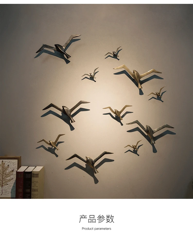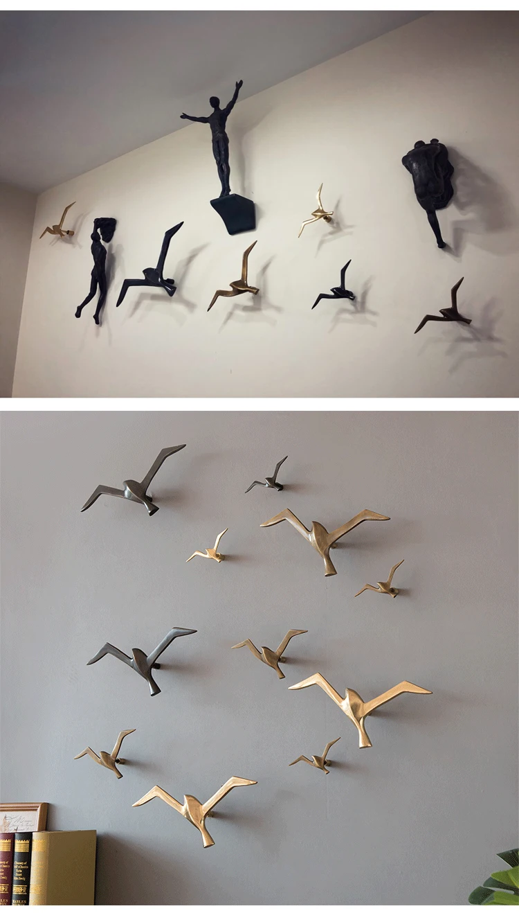 Статуя птицы чайки из чистой меди, подвесная скульптура, украшение на стену в стиле ретро, украшение для дома и комнаты