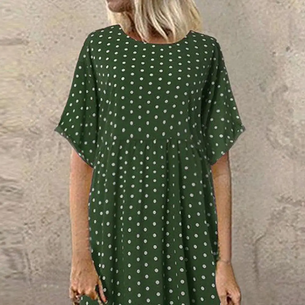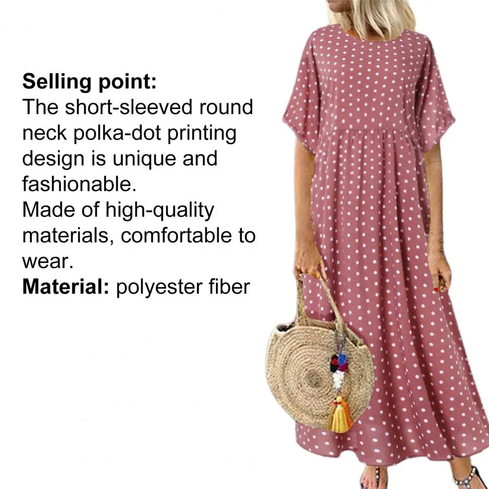Женские платья с коротким рукавом и круглым вырезом, женское пляжное свободное повседневное Макси-платье в горошек в стиле бохо, 2021