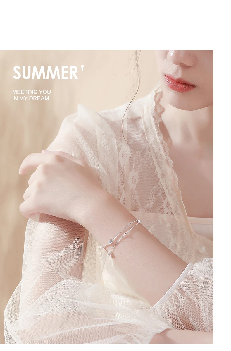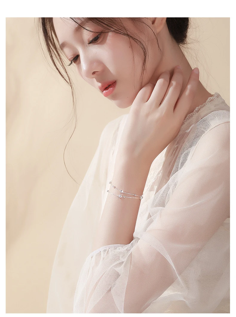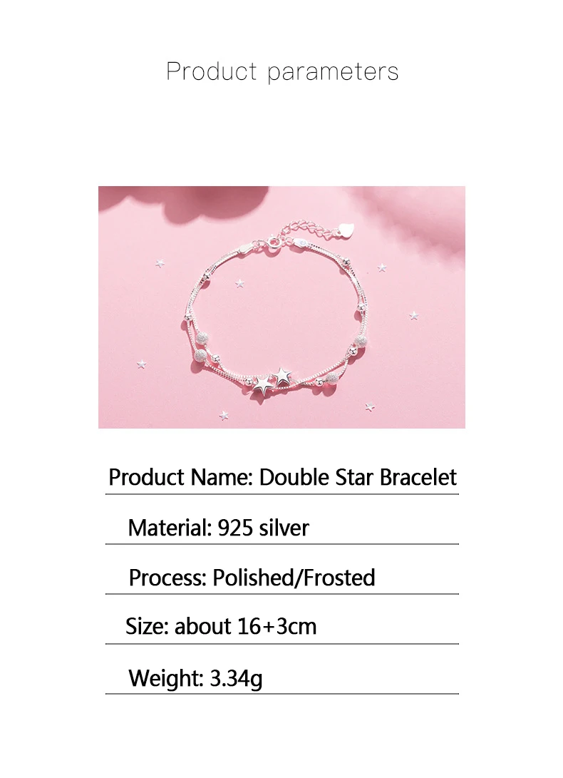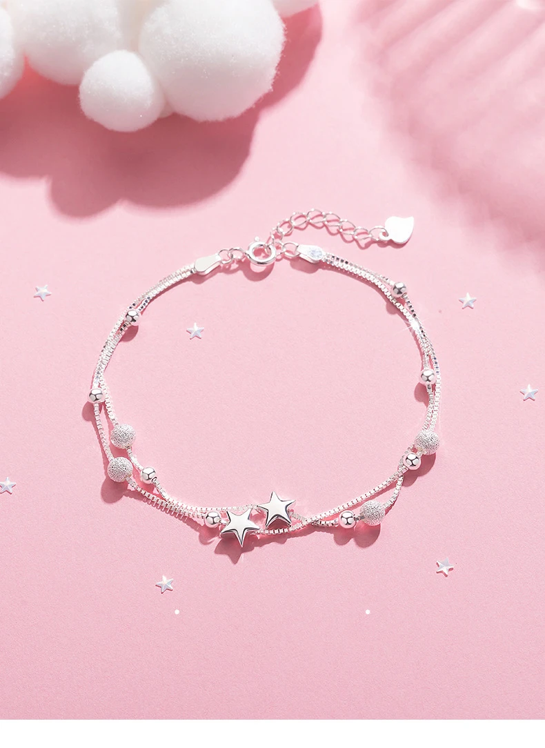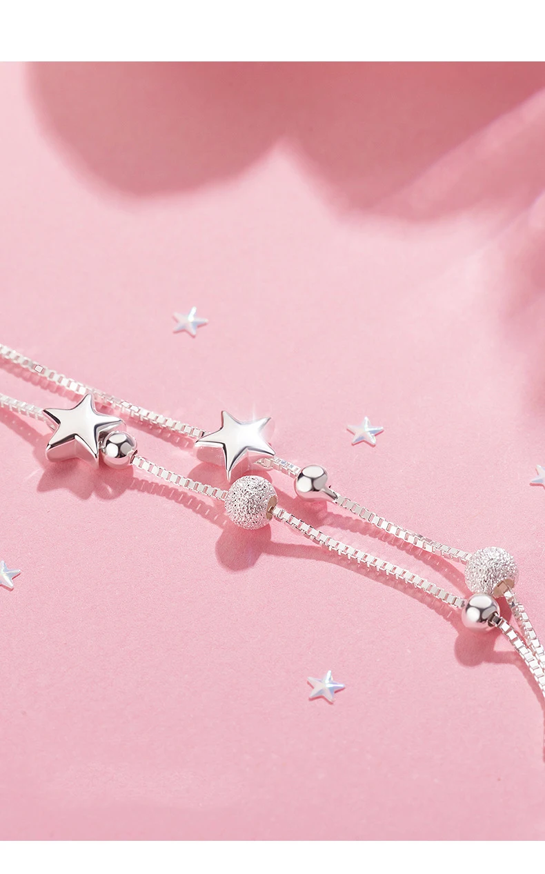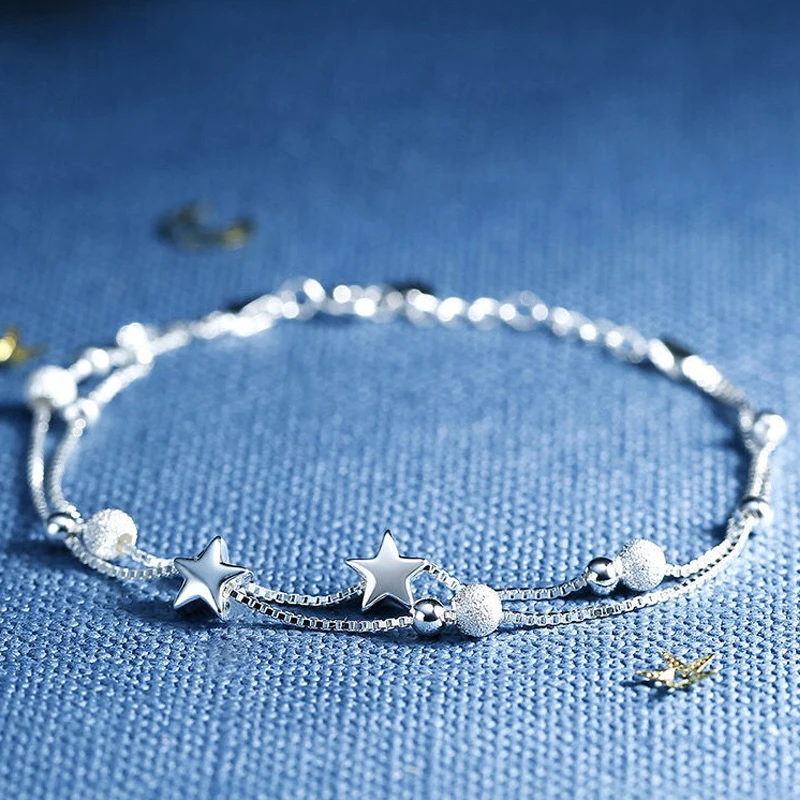 Женский браслет, 925 посеребренный браслет, высокое качество, модная Корейская длинная бижутерия 20 см, ретро, круглая звезда, простой браслет
