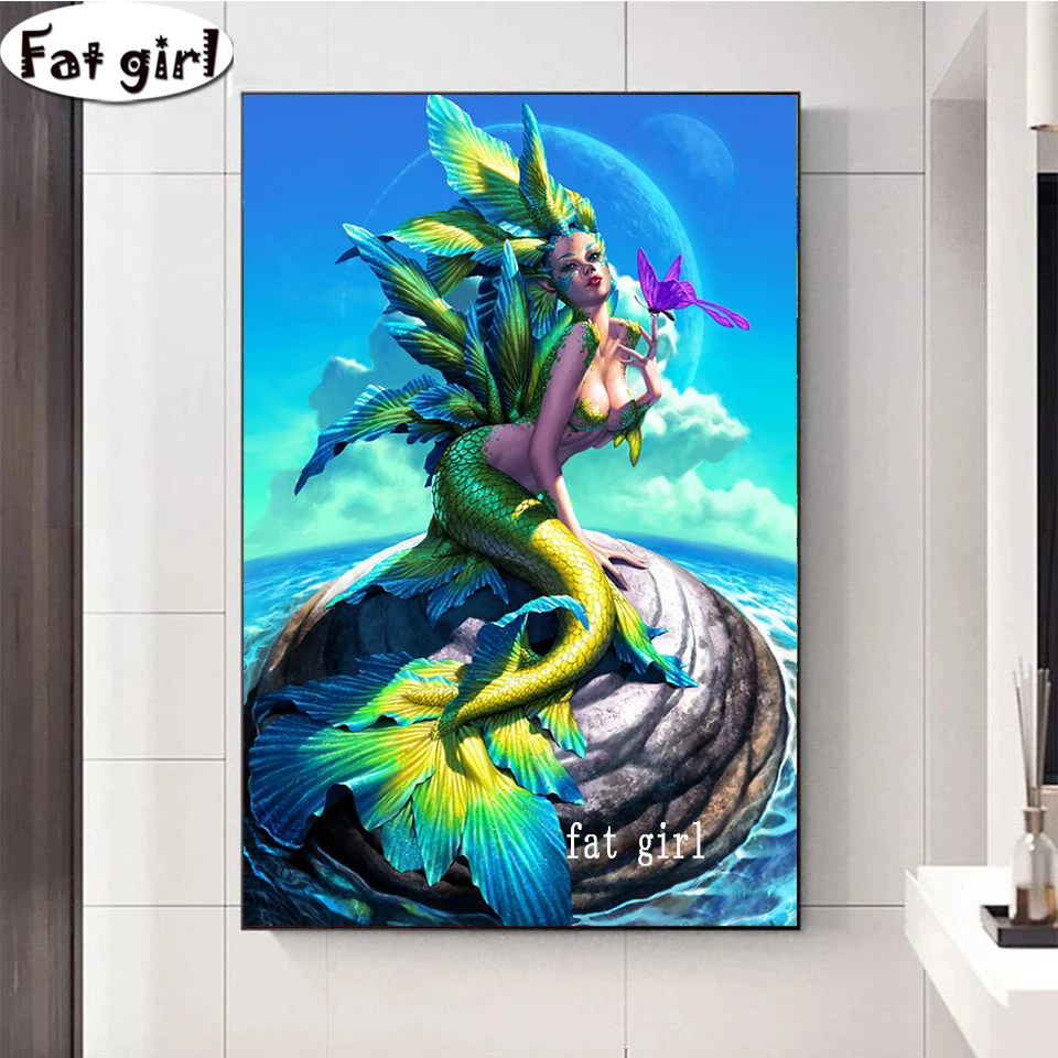 Алмазная вышивка зеленая Русалка, картина сделай сам с изображением животных, бабочек, полноразмерная круглая мозаика, Набор для вышивки крестиком