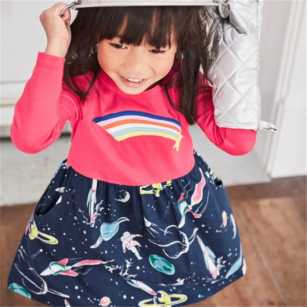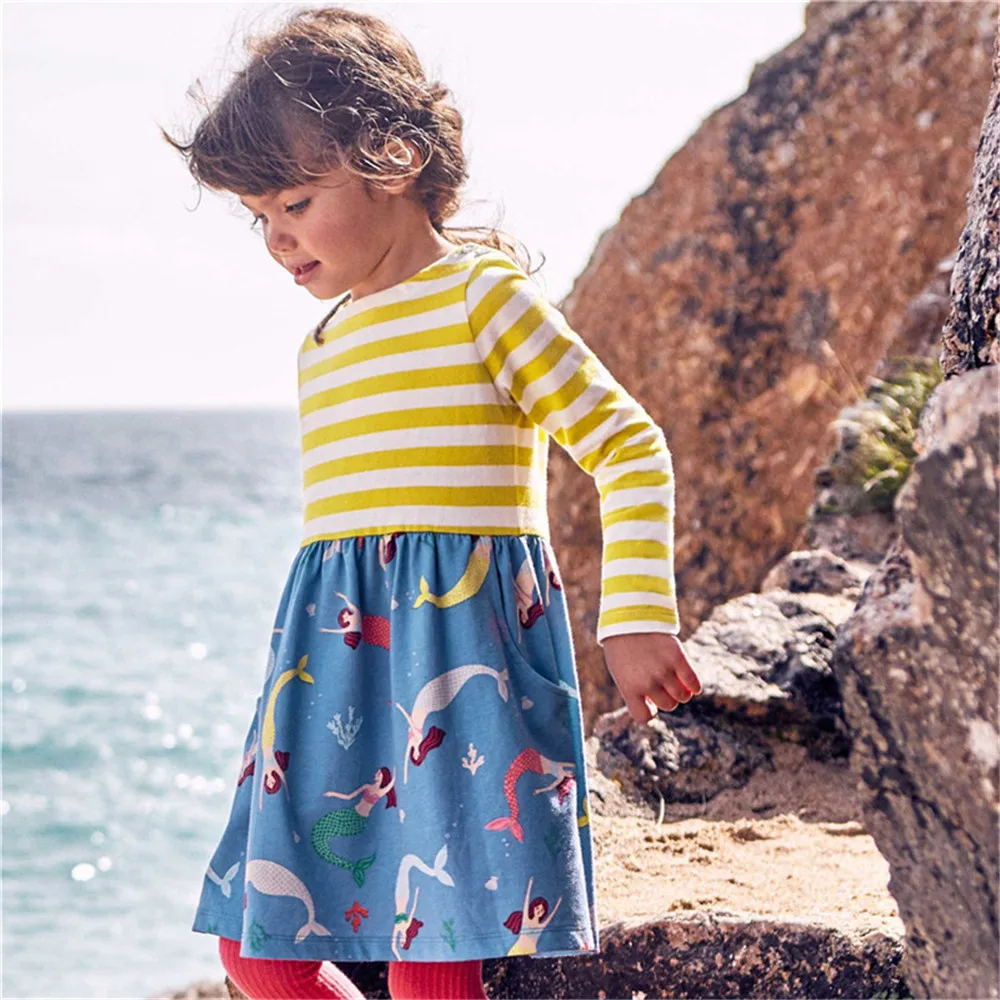Платья принцессы прыгающие с длинным рукавом, осенне-зимние платья в полоску с принтом животных, нарядные платья принцессы, детская одежда для малышей