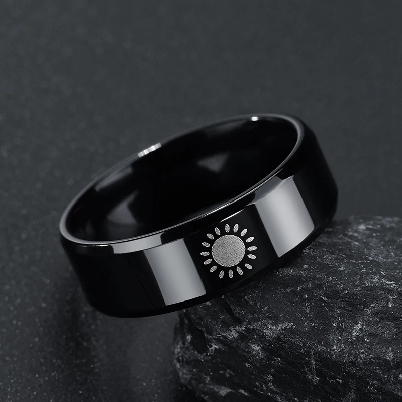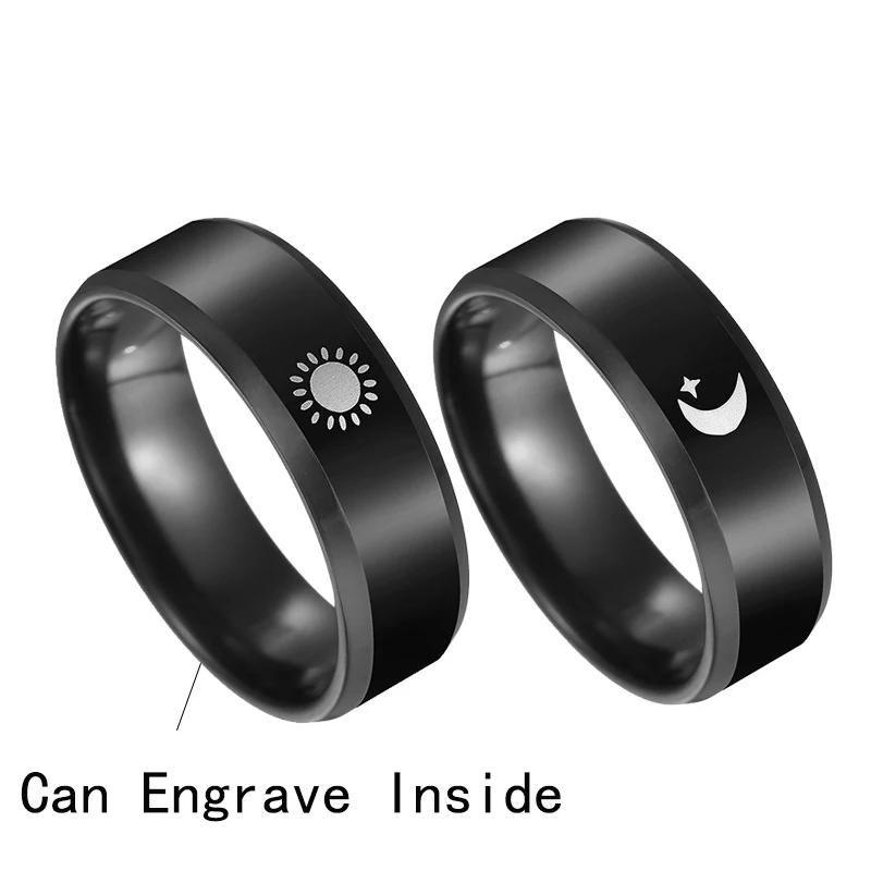 Кольца с гравировкой имени для влюбленных, простые парные кольца из нержавеющей стали с декором солнце, луна, звезда, минимализм, черная гравировка имени, ювелирные изделия на заказ