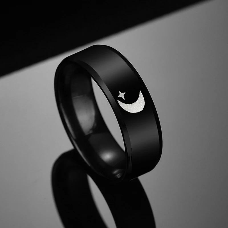 Обещание, простые парные кольца с Луной и солнцем, звездой, минимализм, кольцо из нержавеющей стали с черной гравировкой имени для влюбленных, персонализированные ювелирные изделия