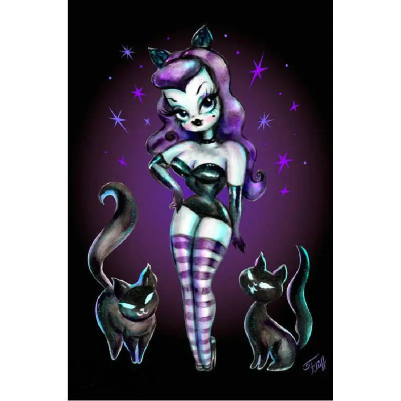 2021 Новый 5D Diy картина, вышитая бисером комплект мультфильмы Стразы мозаика пасты полная Алмазная вышивка, девушка и супер-Кот изображение