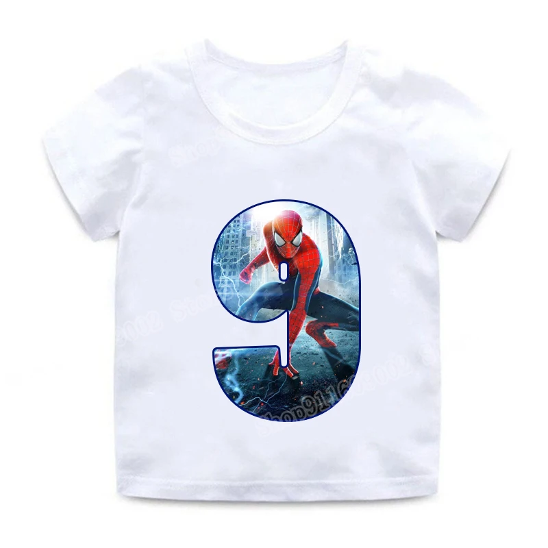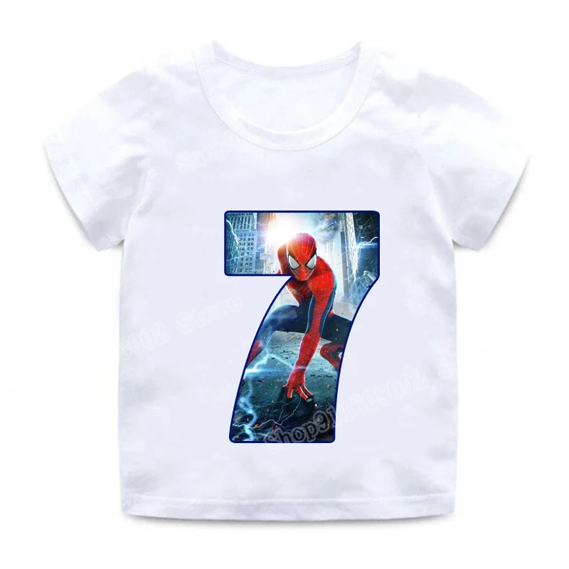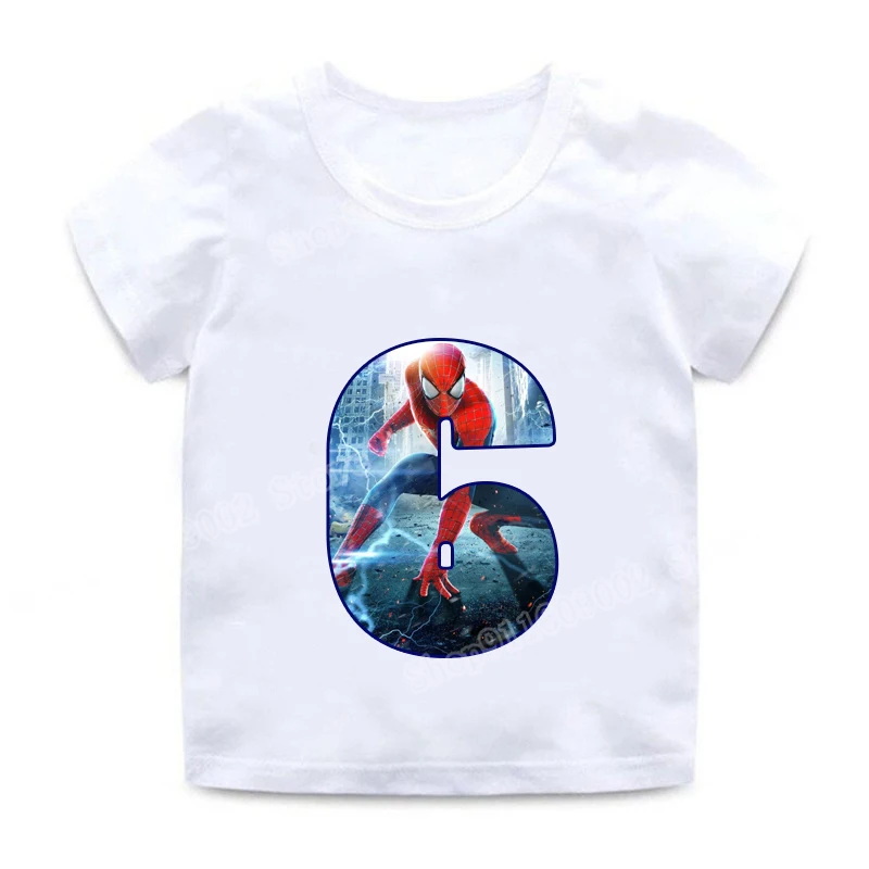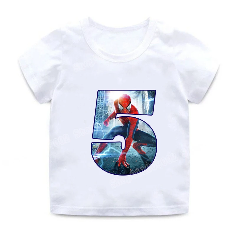 С героями комиксов Марвел, Детская футболка "Человек-паук" номер 1-9 лет, одежда для маленьких мальчиков Графические футболки, топы, одежда для малышей, платье для дня рождения, для подарков одежда