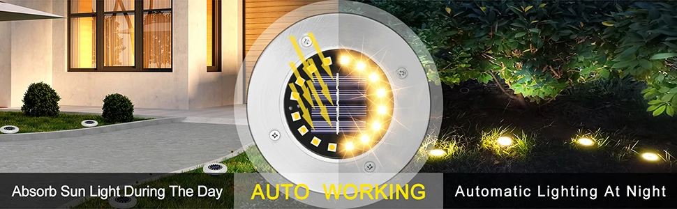 1. Поставляется с автоматическим на применяются в сумерках и не требуется проводка: Солнечная наземная светильник s заглубленный бассейн солнечный светильник автоматически светильник s, когда наступает ночь и автоматически отключается при восходе солнца. И безопасно использовать вокруг детей и домашних животных 2. Светодиодный светильник для садовой лужайки: 16/20 светодиодный светильник с яркой солнечной дорожкой s: В отличие от других светодиодный s, наш солнечный наземный светильник s состоит из 16/20 светодиодный светильник s, что означает производство большего количества светильник для вашего пути. 3. Идеально подходит для районов, где обычные электрические поставки не доступны. 4. Обеспечить освещение в любом месте: Нет необходимости заменять проводку или батареи, используйте свободную солнечную энергию! Это помогает осветить ваш путь, что делает его более безопасным, но также добавляет красивый акцент в ночной ландшафт.